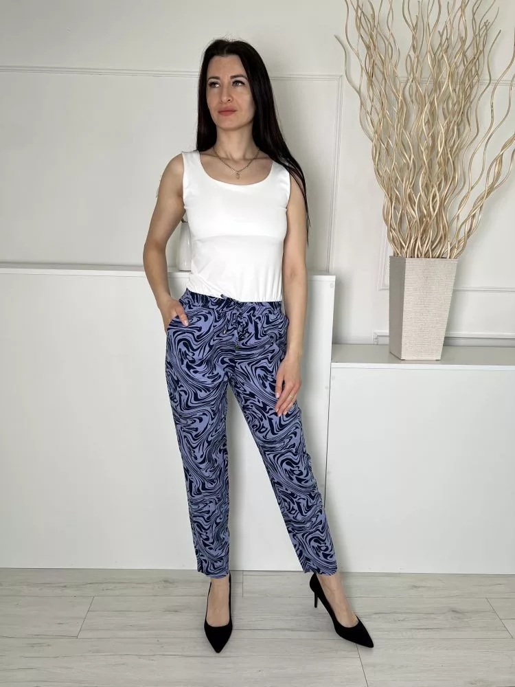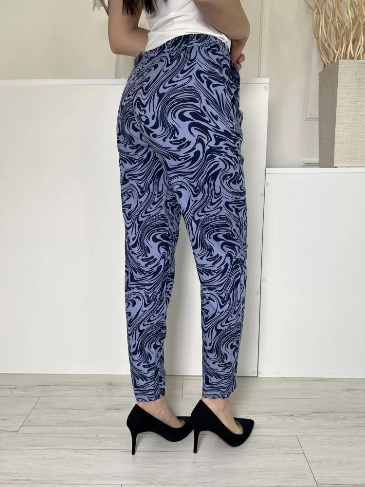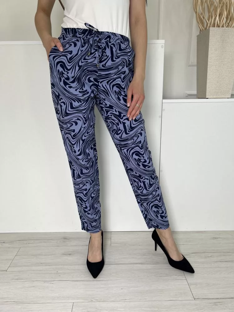 Papaya (S) Kék Sötétkék Mintás, Gumisderekú Díszmegkötős, Zsebes Nadrág