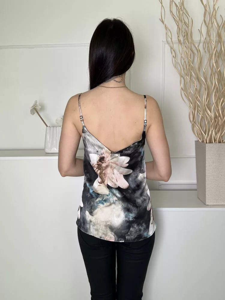 Parisian (M) Fehér-Fekete Színes Mintás, Állítható Pántú Szatén Anyagú Felső