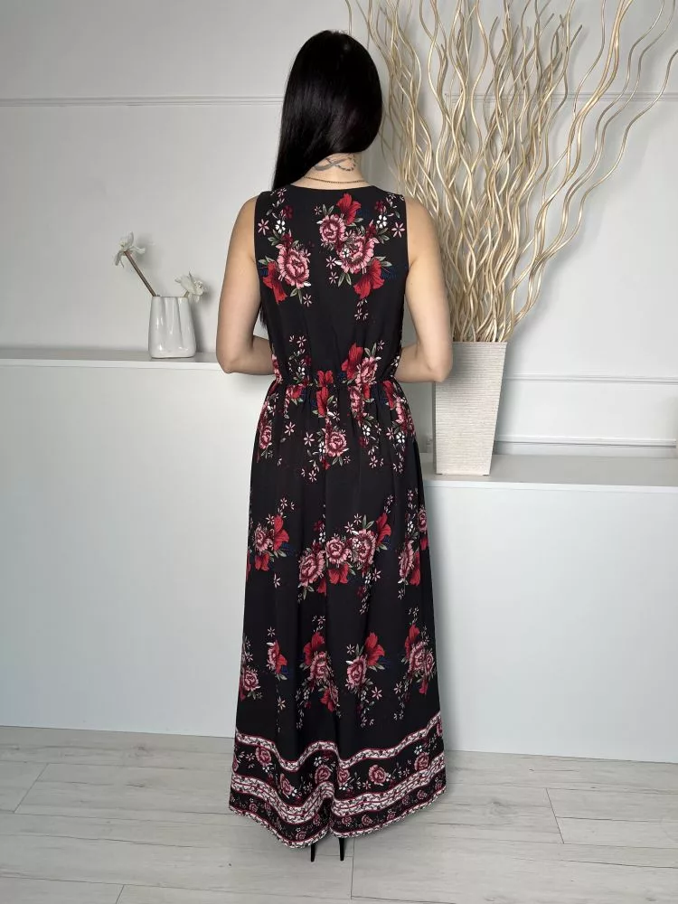 Parisian (M) Fekete Piros Virágos, Mellnél Átlapolt Gumisderekú Ruha