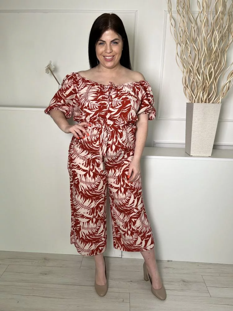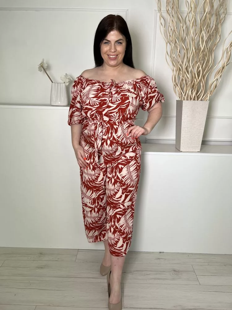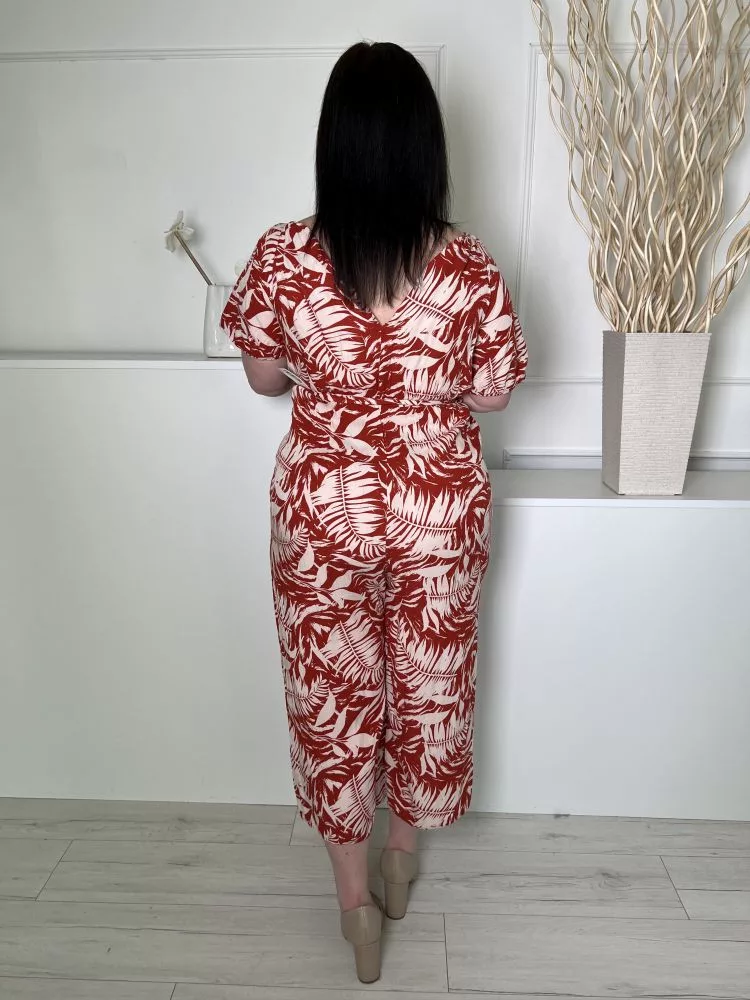 Peacocks (L) Vörösesbarna Fehér Mintás, Gumisderekú Ejtett Gumis Vállú, Derékban Megkötős Overál