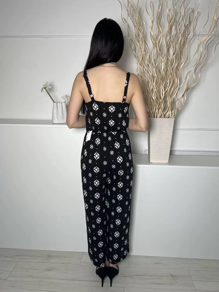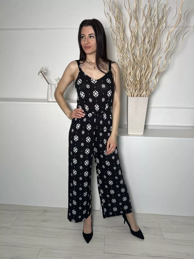 Peacocks (M) Fekete Fehér Mintás, Pántos Rugalmas Anyagú Overál