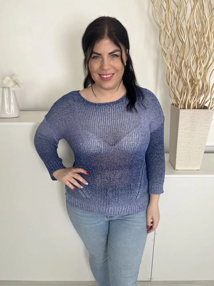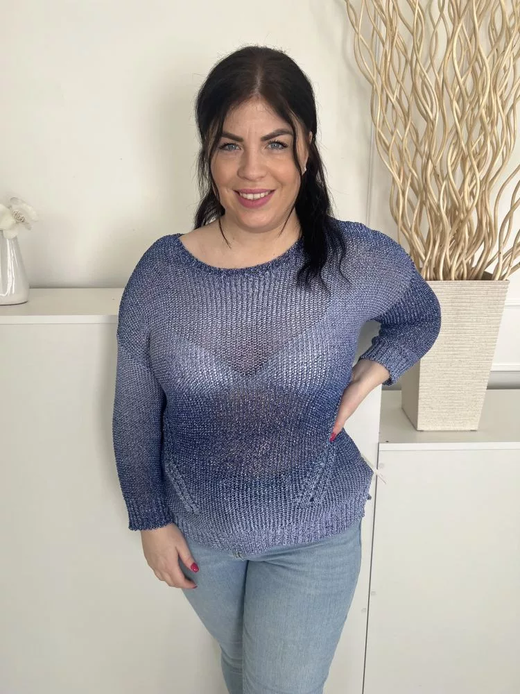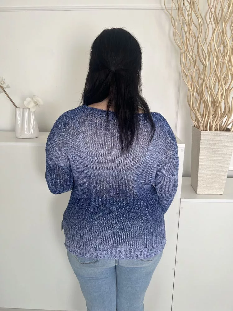 Per Una (L) Felhőkék Kötött, Áttetsző Csónak Nyakú, Oldalt Sliccelt Felső