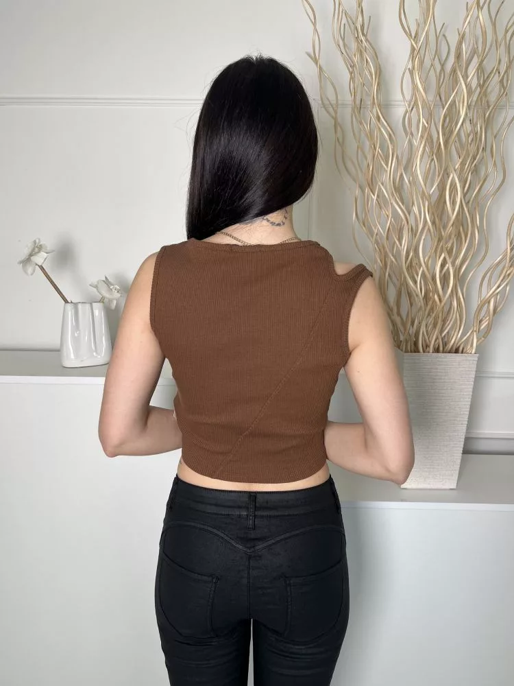 Pretty Little Thing (M) Barna Dupla Pántos, Anyagában Bordázott Mellnél Kivágott, Rövid Fazonú Felső
