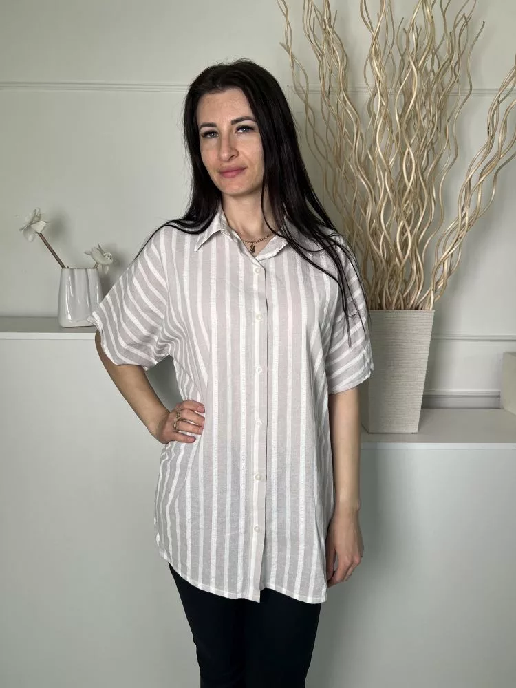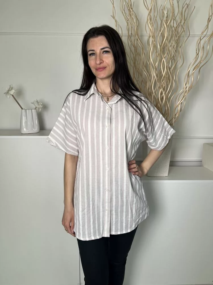 Pretty Little Thing (S) Fehér Szürke Csíkos, Elől Végig Gombos 100% Pamut Alapanyagú Felső