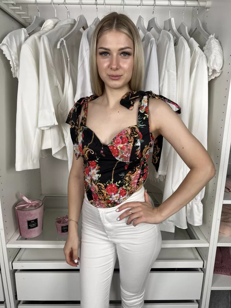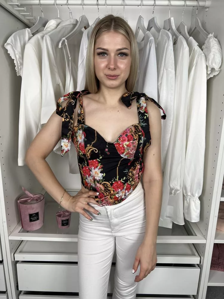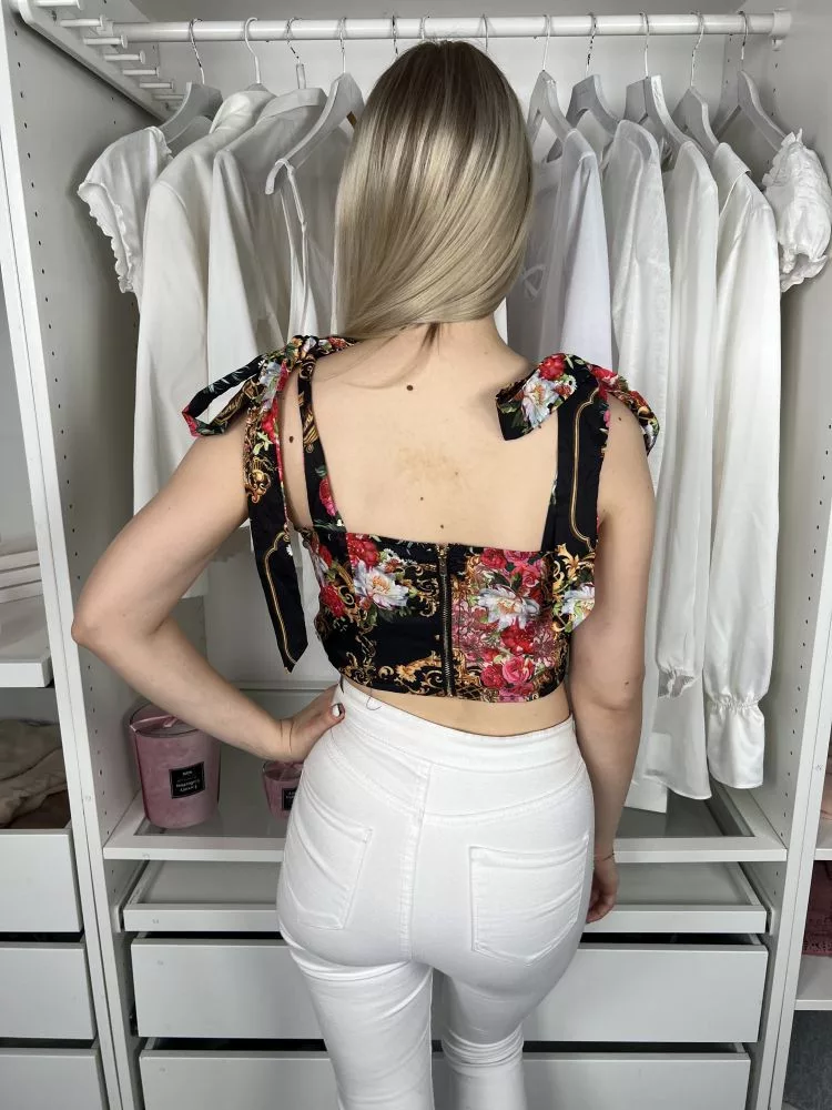 Pretty Little Thing (S) Fekete Színes Virágos, Hátul Cipzáros Megköthető Pántú Felső