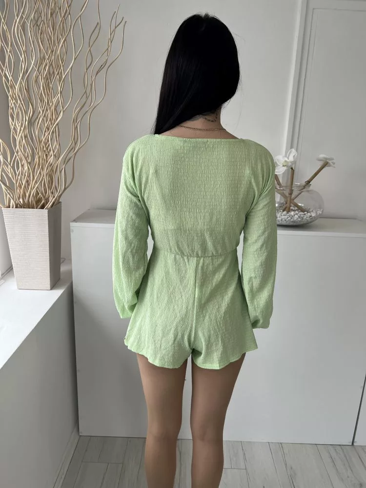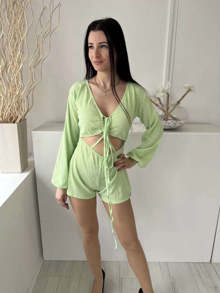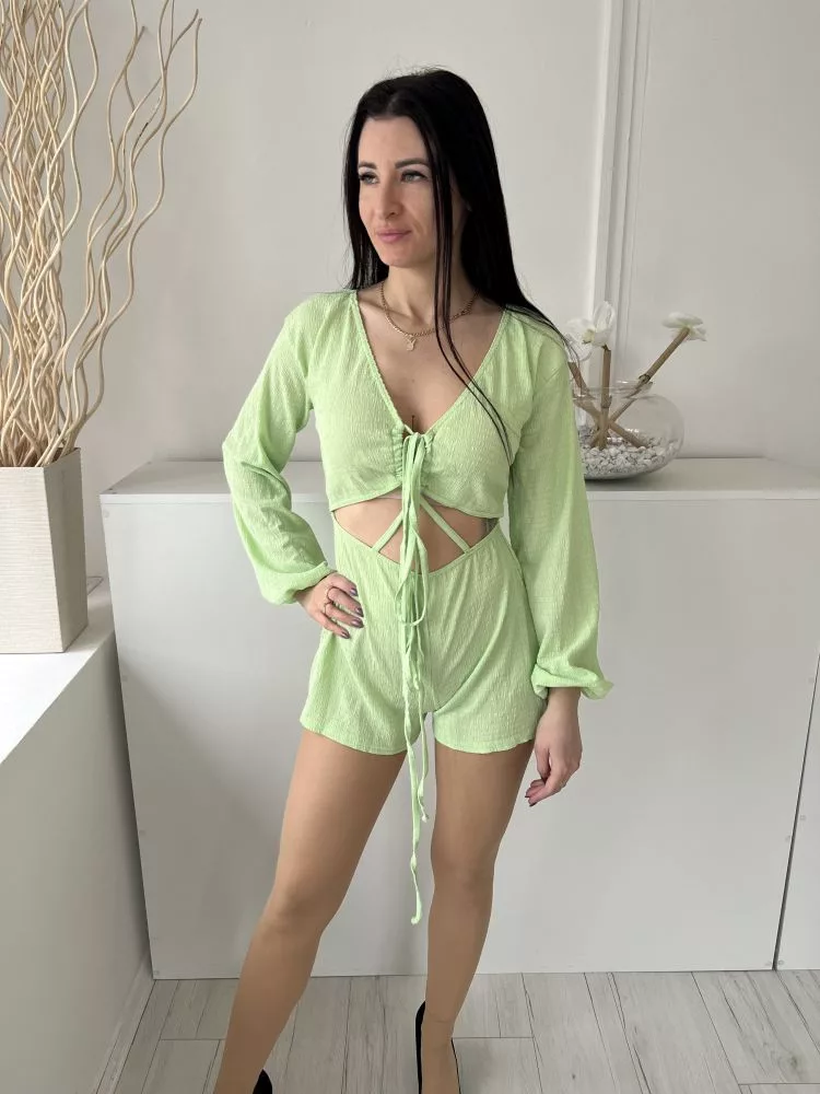 Pretty Little Thing (XS) Almazöld Mellnél Összehúzható, Megkötős Derékban Kivágott, Gumisderekú Overál
