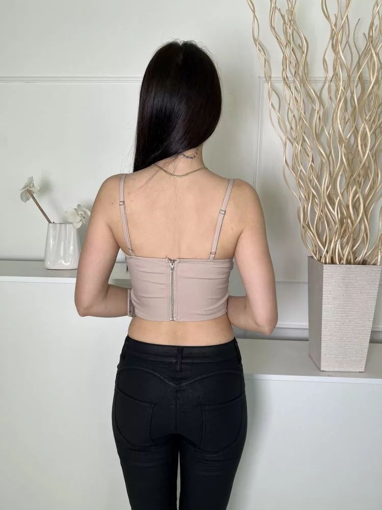 Pretty Little Thing (XS) Tejeskávé Hátul Cipzáros, Mellnél Díszhajtásos Mélykivágású, Pántos Felső