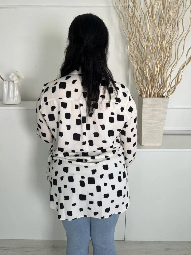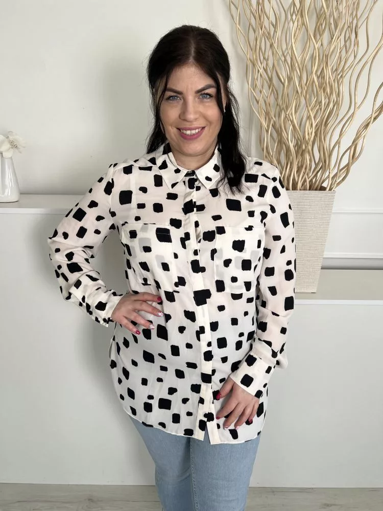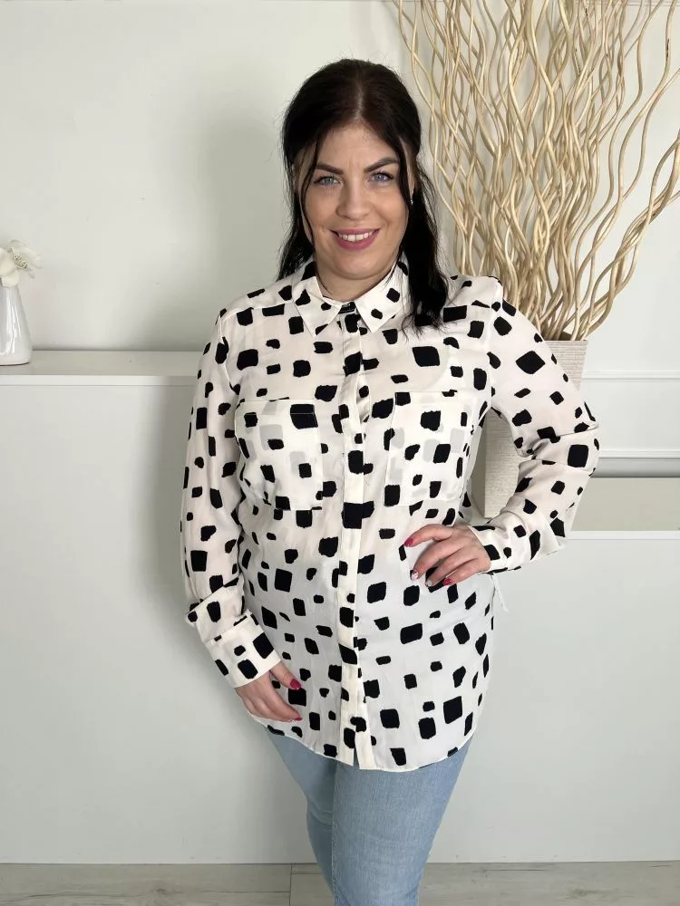 Primark (L) Fehér Fekete Foltmintás, Elől Rejtett Gombos Galléros, Mellnél Zsebes Felső