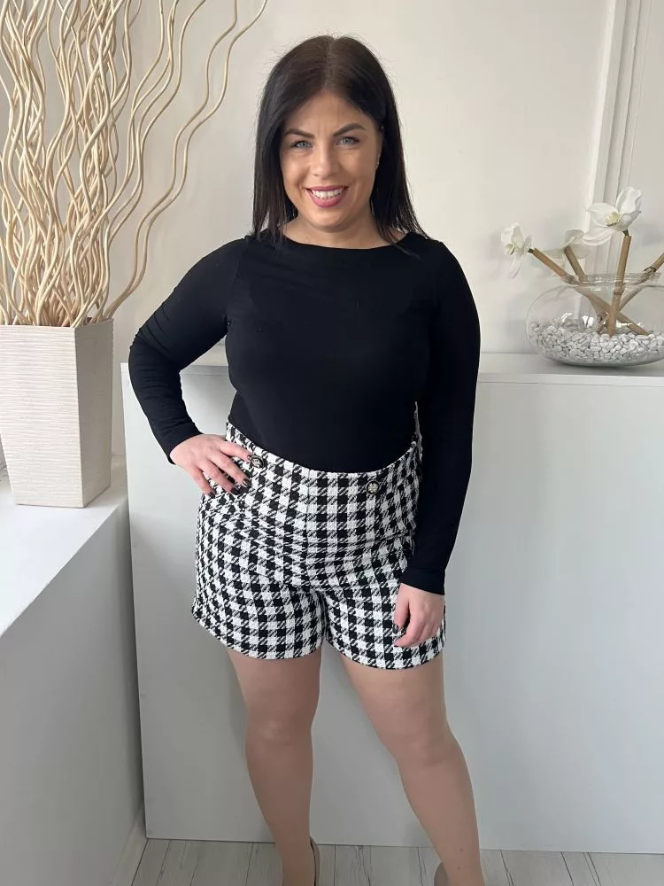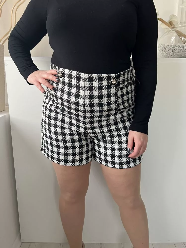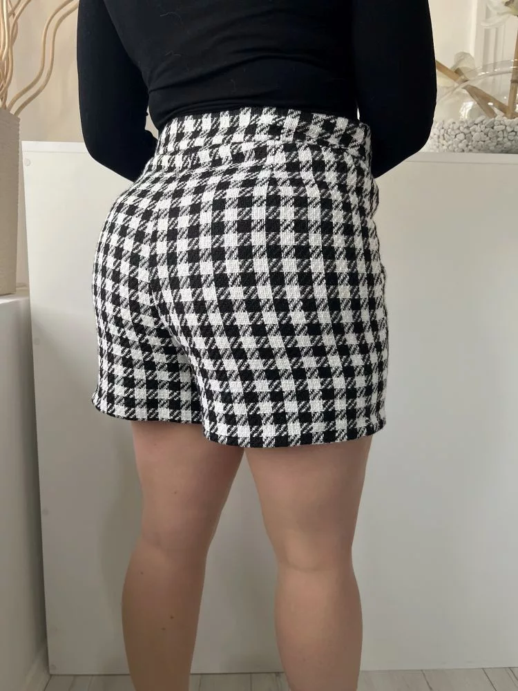 Primark (L) Fehér-Fekete Kockás, Oldalt Cipzáros Elől Díszgombos, Szatén Bélésű Rövidnadrág