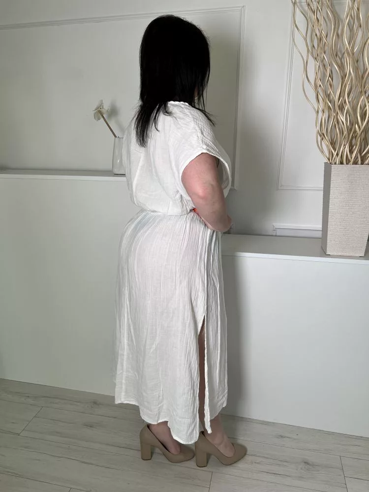 Primark (L) Fehér Oldalt Sliccelt, Anyagában Mintás 100% Pamut, Enyhén Áttetsző Ruha