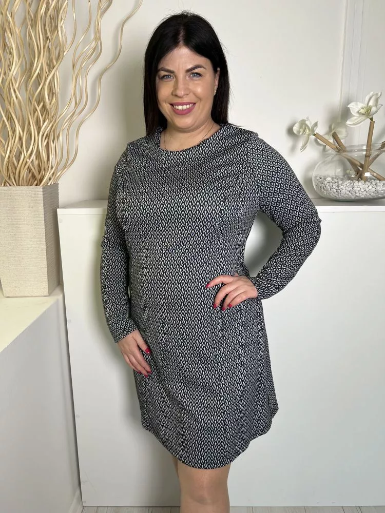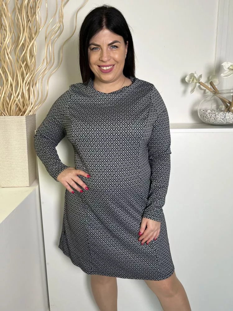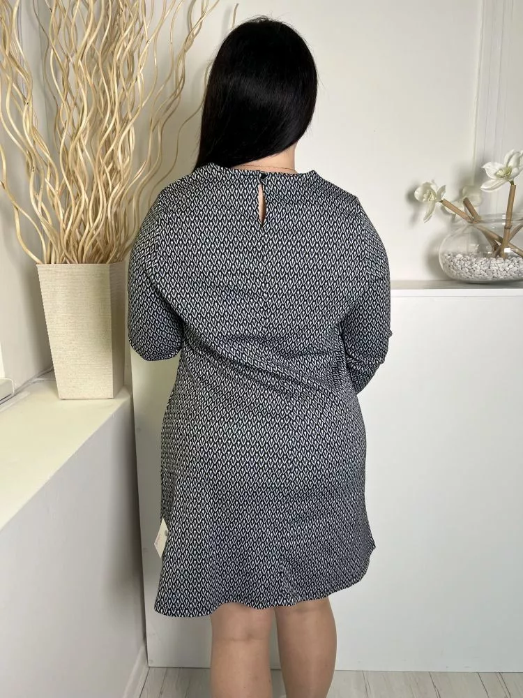 Primark (L) Fekete-Fehér Mintás, Hátul Nyakban Gombos Karcsúsított, Jersey Anyagú Ruha