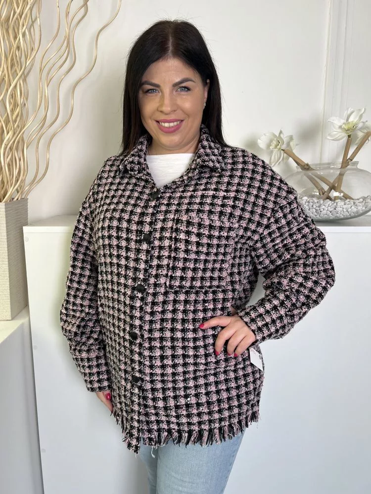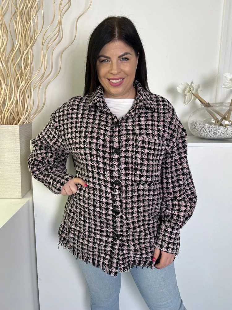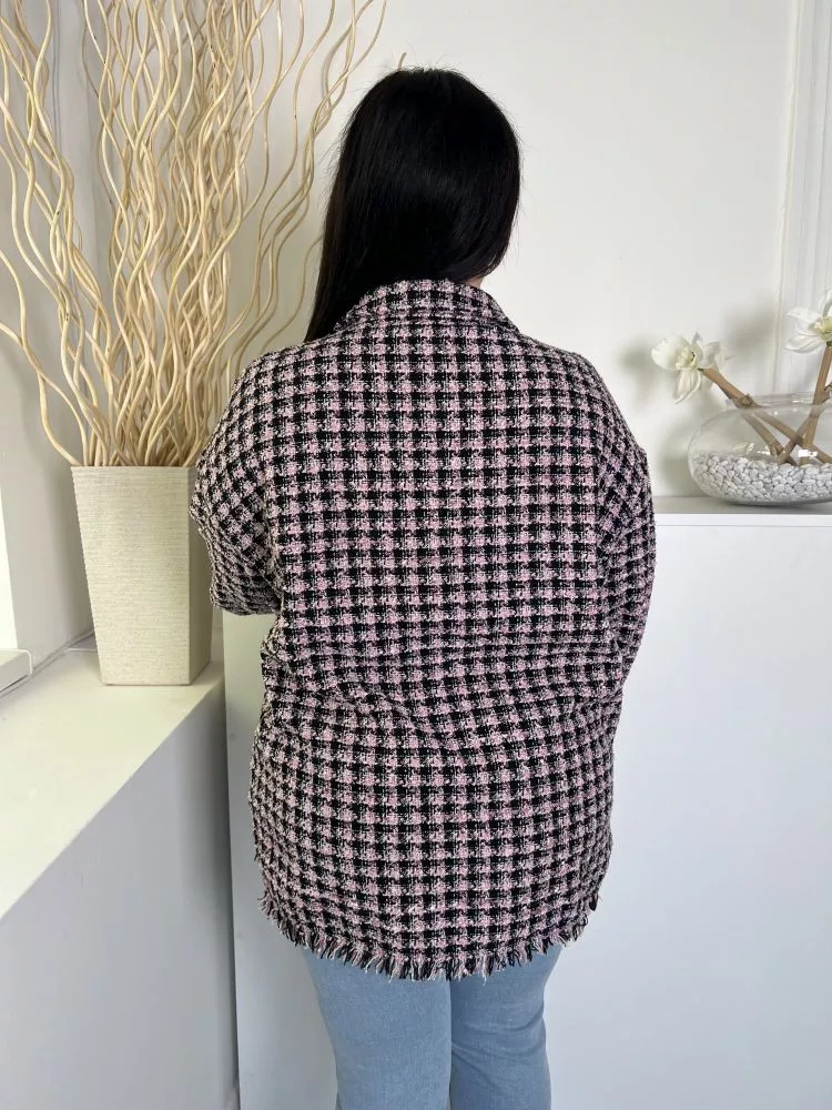 Primark (L) Fekete-Rózsaszín Kockás, Elől Gombos Mellnél Zsebes, Rojtos Aljú Kabát
