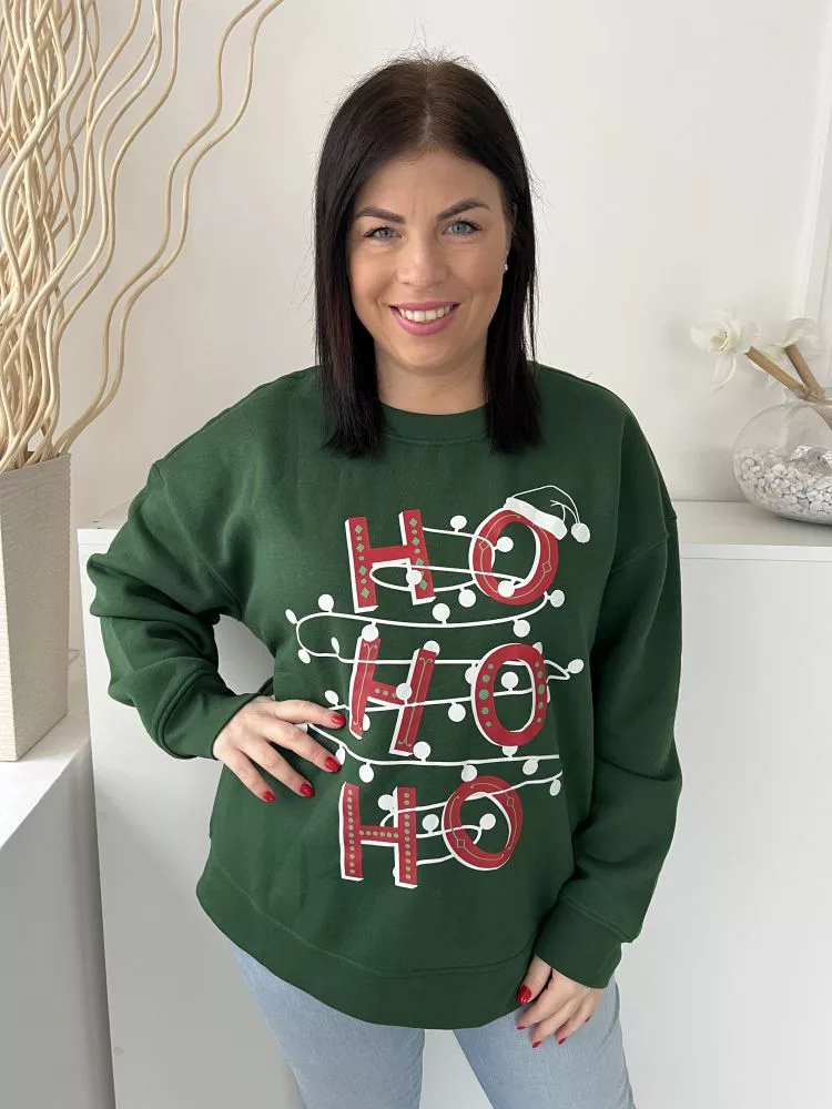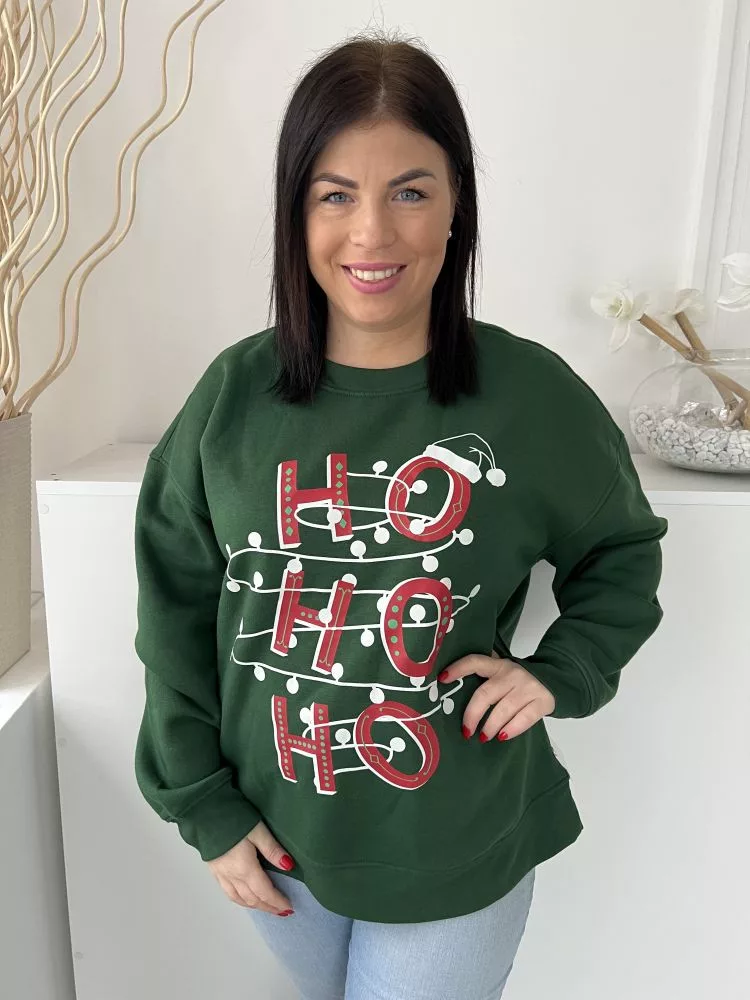 Primark (L) Fenyőzöld Elől Feliratos, Belül Enyhén Bolyhos Kerek Nyakú Pulóver