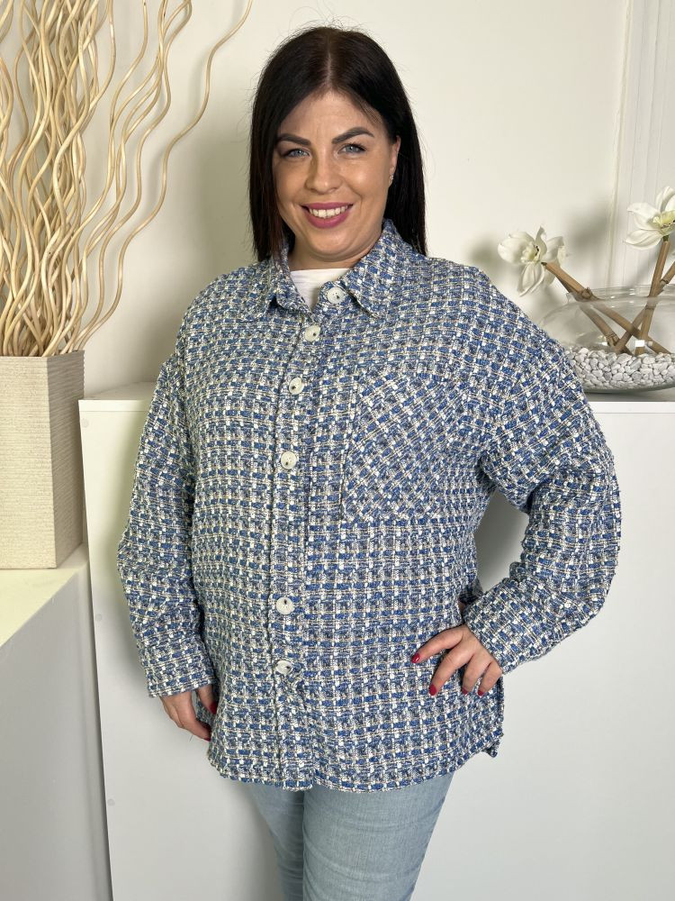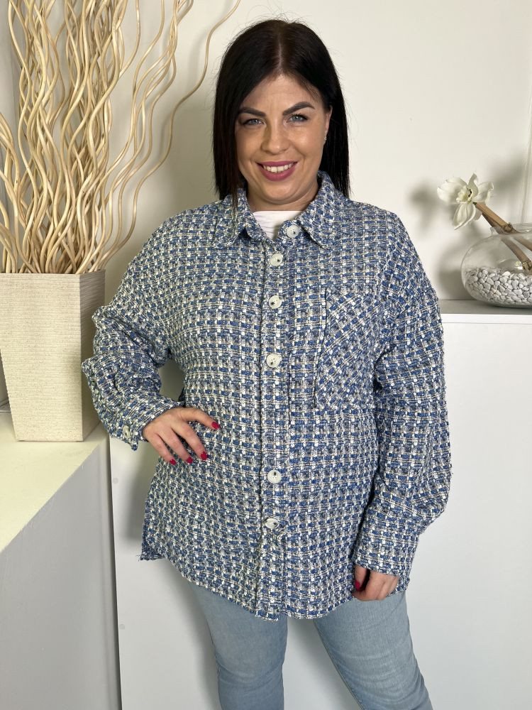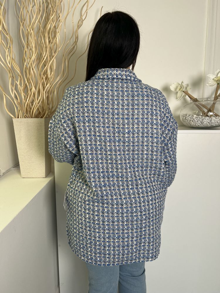 Primark (L) Kék-Fehér Elől Gombos, Zsebes Buklé Anyagú Kabát