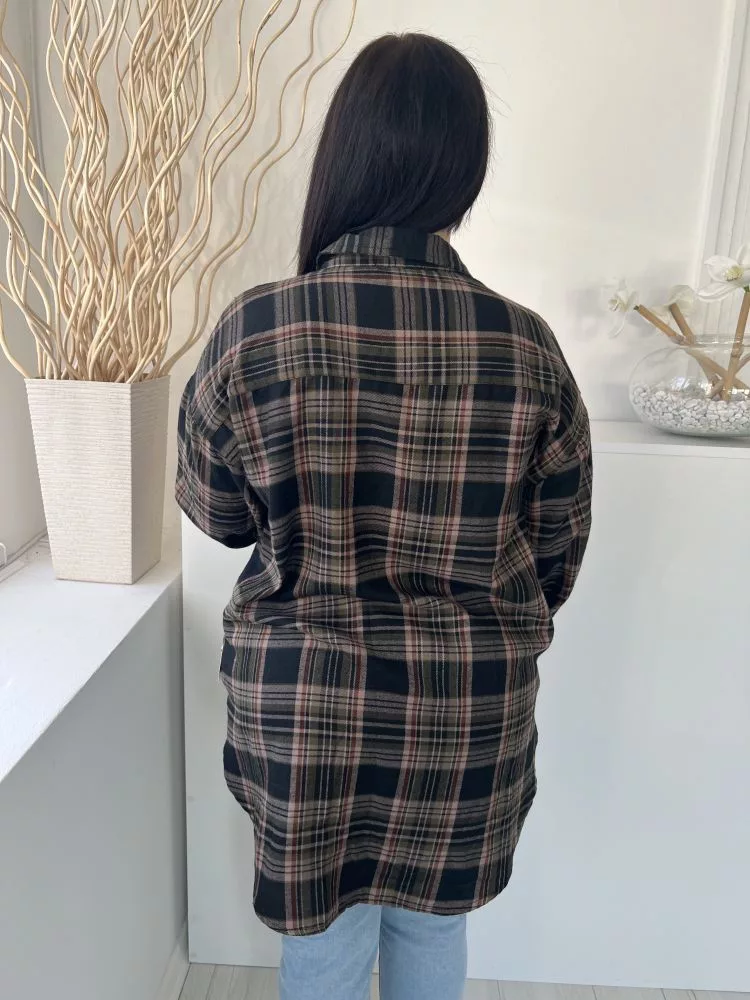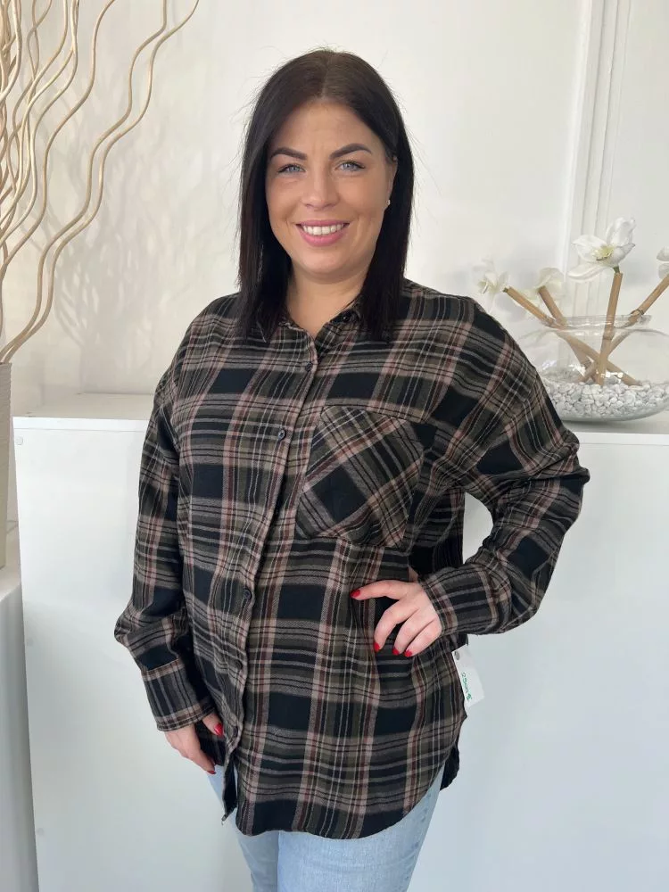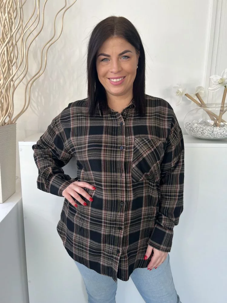 Primark (M) Barna-Fekete Kockás, Elől Végig Gombos Mellnél Zsebes, Vastaga Anyagú Felső