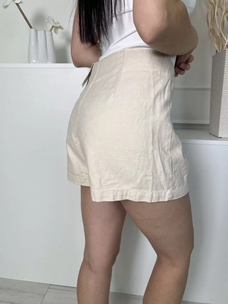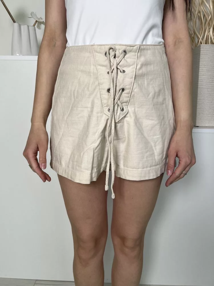 Primark (M) Drapp Elől Fűzős, Megkötős Oldalt Cipzáros, 50% Pamut Alapanyagú Rövidnadrág