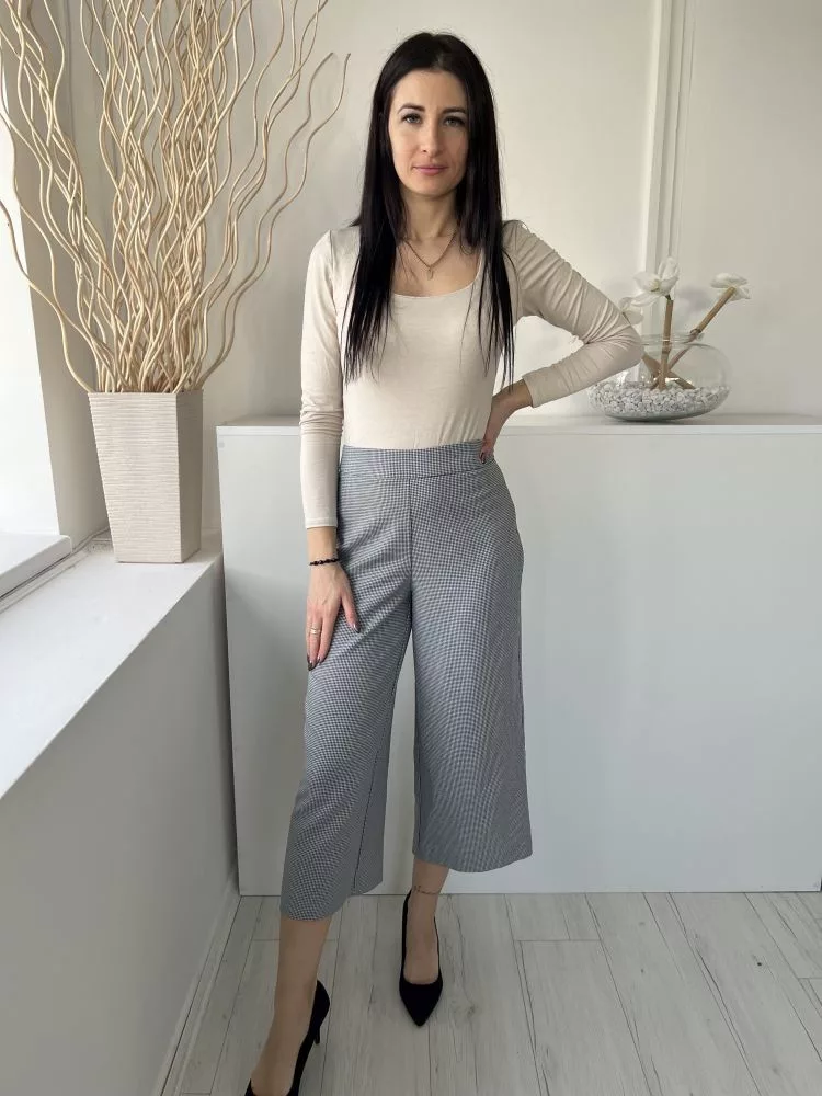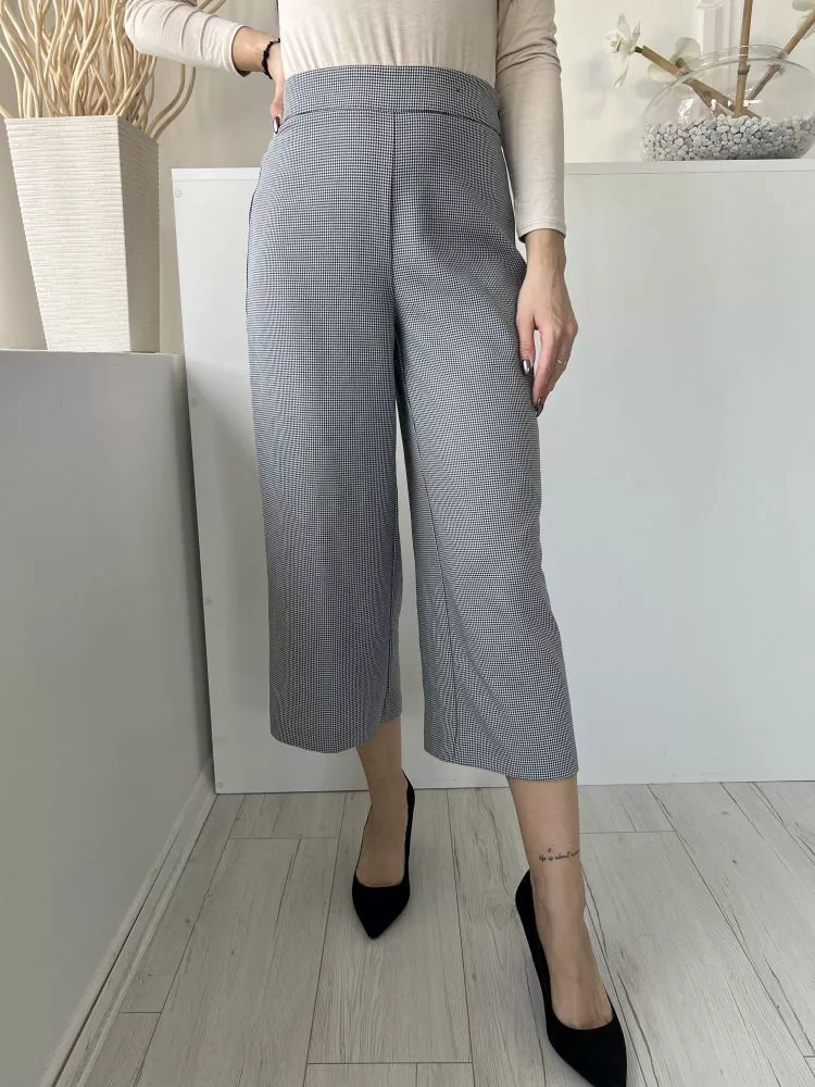 Primark (M) Fehér Fekete Apró Tyúklábmintás Oldalt Cipzáros, Bőszárú Nadrág