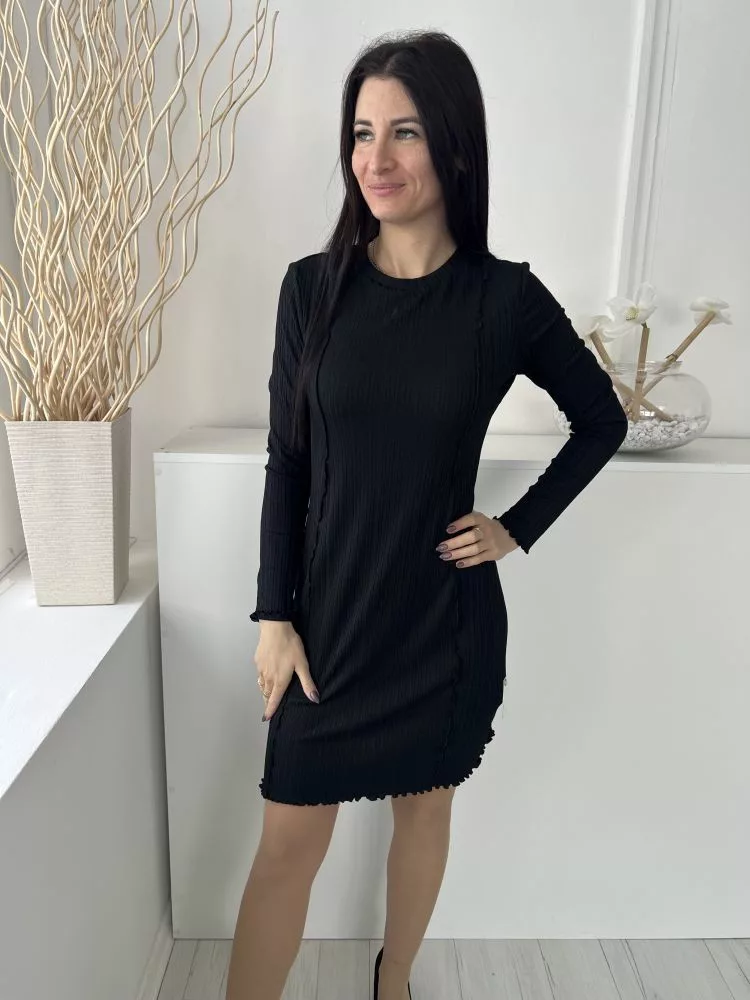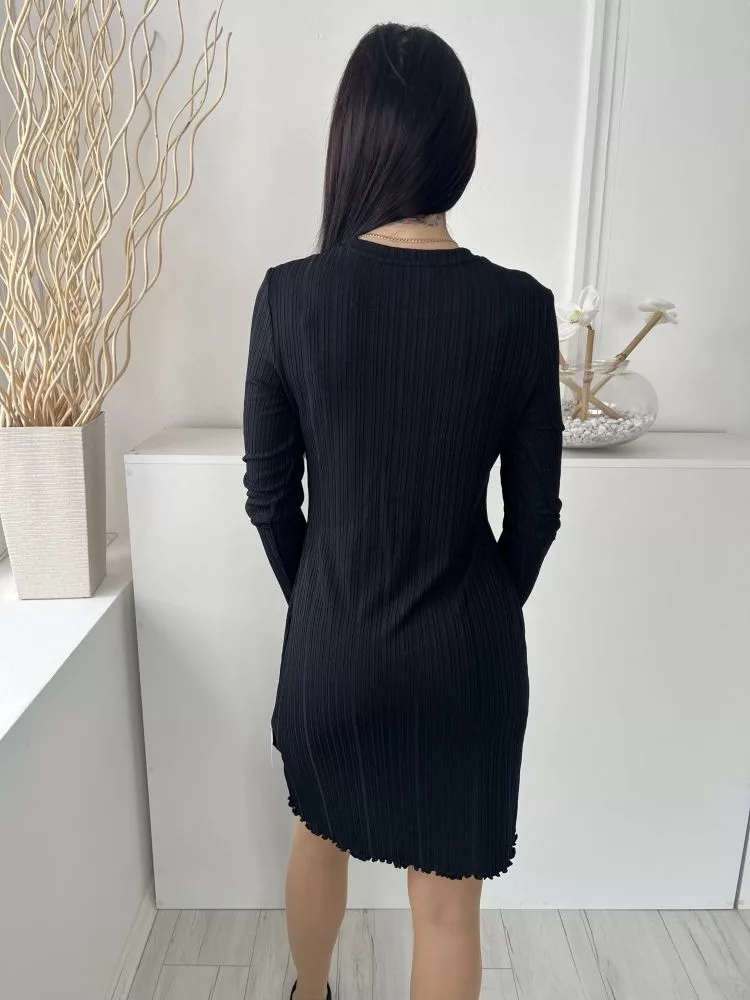 Primark (M) Fekete Anyagában Mintás, Elől Díszvarrásos Kerek Nyakú, Fodros Aljú Ruha