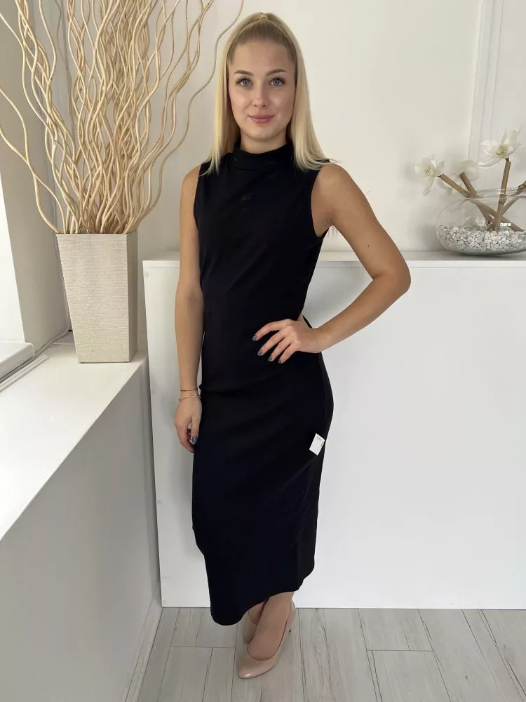Primark (M) Fekete Magasított Nyakú, Anyagában Bordázott Karcsúsíott, Hátul Sliccelt Ruha