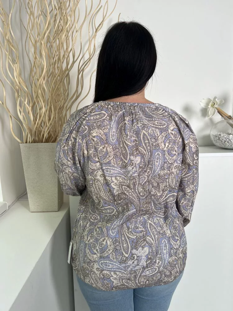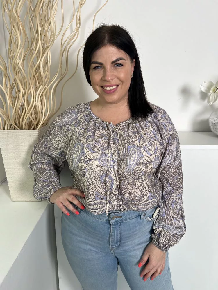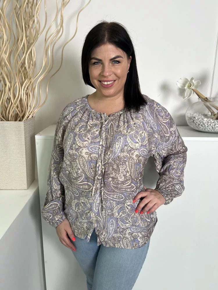 Primark (M) Kék Drapp Mintás Elől Végig Gombos, Nyakban Díszmegkötős Felső