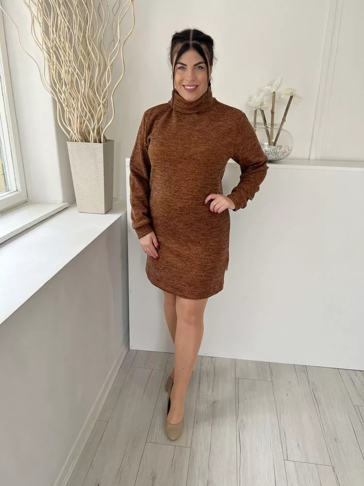Primark (M) Rőtbarna Garbós Nyakú, Kötött Patentos Ujjvégű Ruha