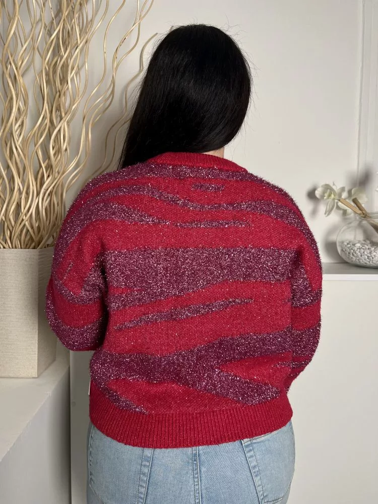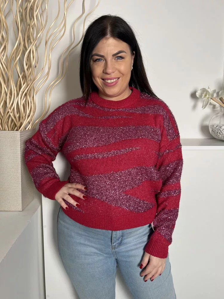 Primark (M) Sötétrózsaszín Anyagában Mintás Csillogó Szálas Kerek Nyakú, Kötött Felső