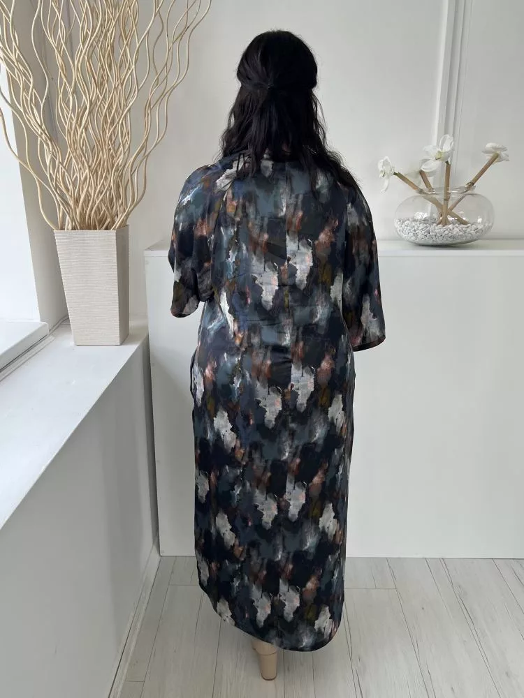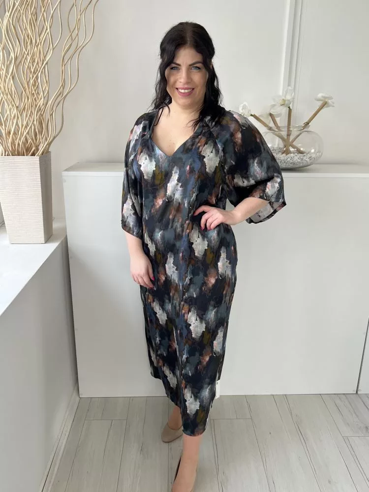 Primark (M) Színes Mintás, V Kivágású Fényes Anyagú, Bélelt Ruha