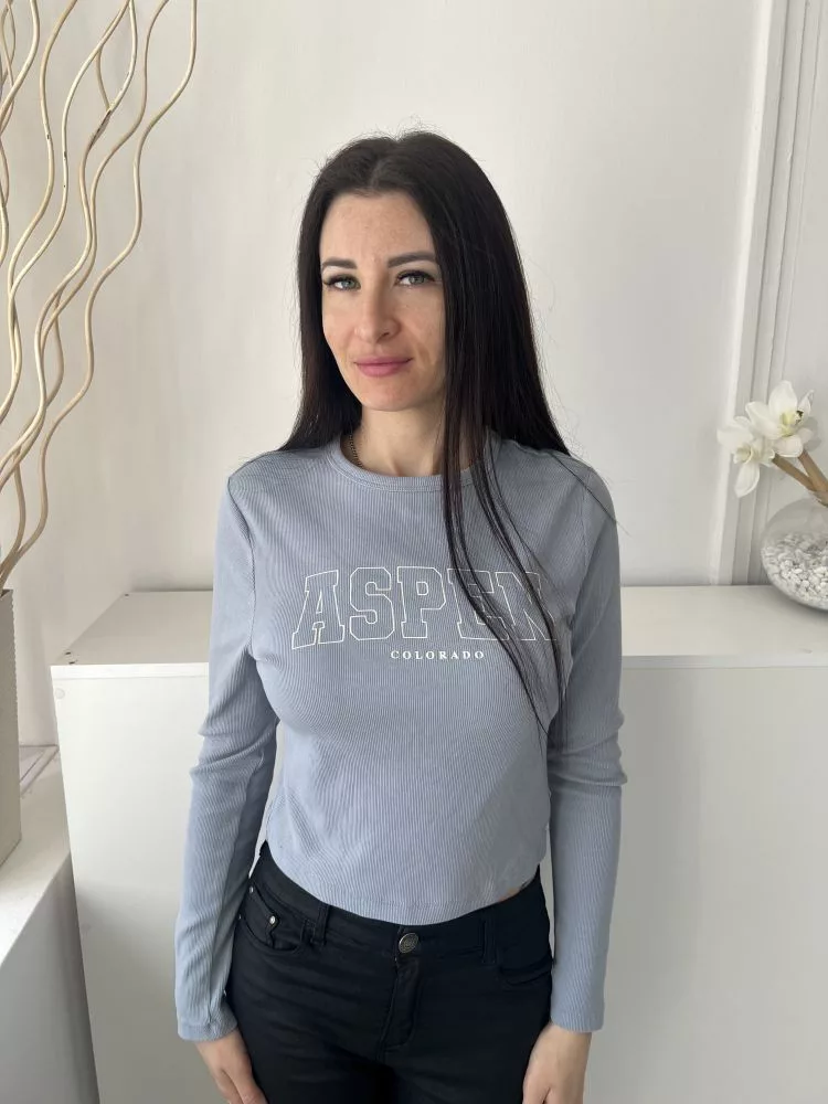 Primark (M) Szürkéskék Anyagéban Mikrobordázott Mellnél Feliratos, Kerek Nyakú, 95% Pamut Felső