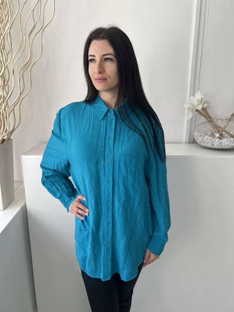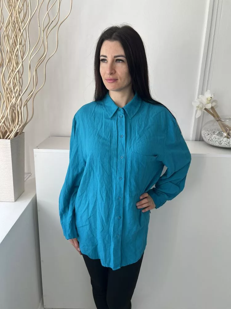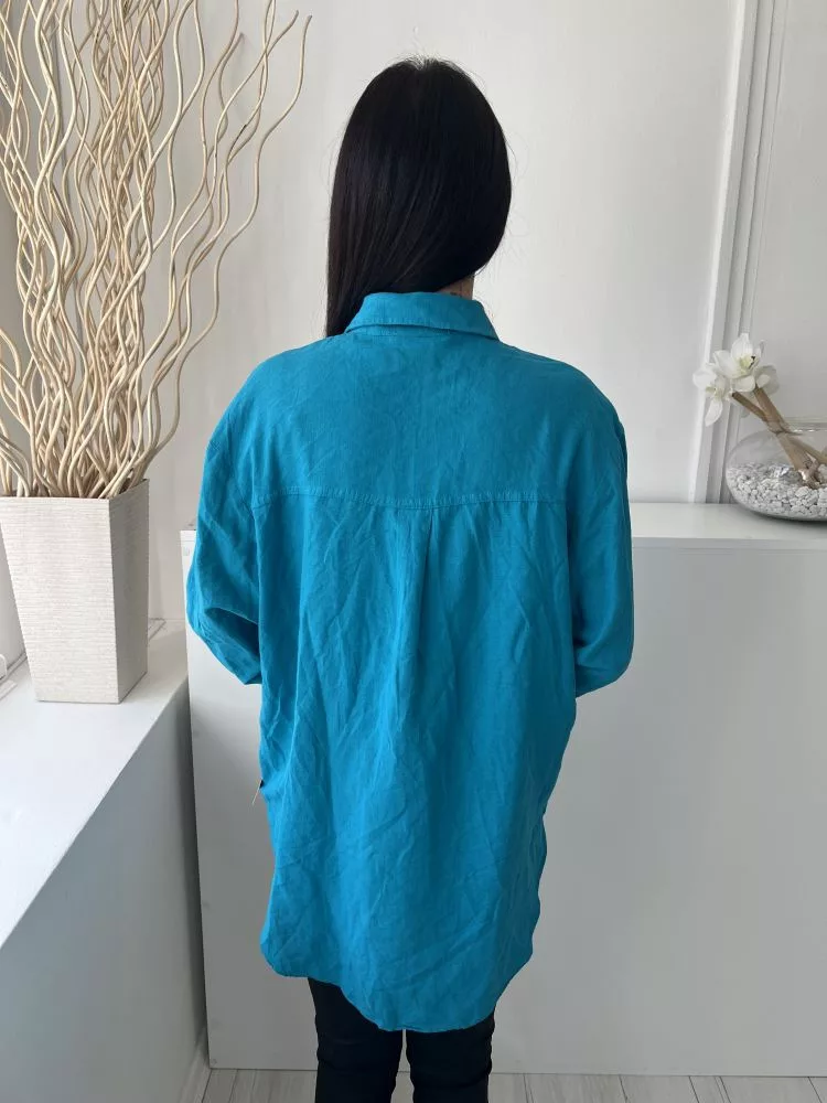 Primark (M) Tengerkék Elől Végig Gombos, Mellnél Zsebes 54% Len és 14% Pamaut Alapanyagú Felső
