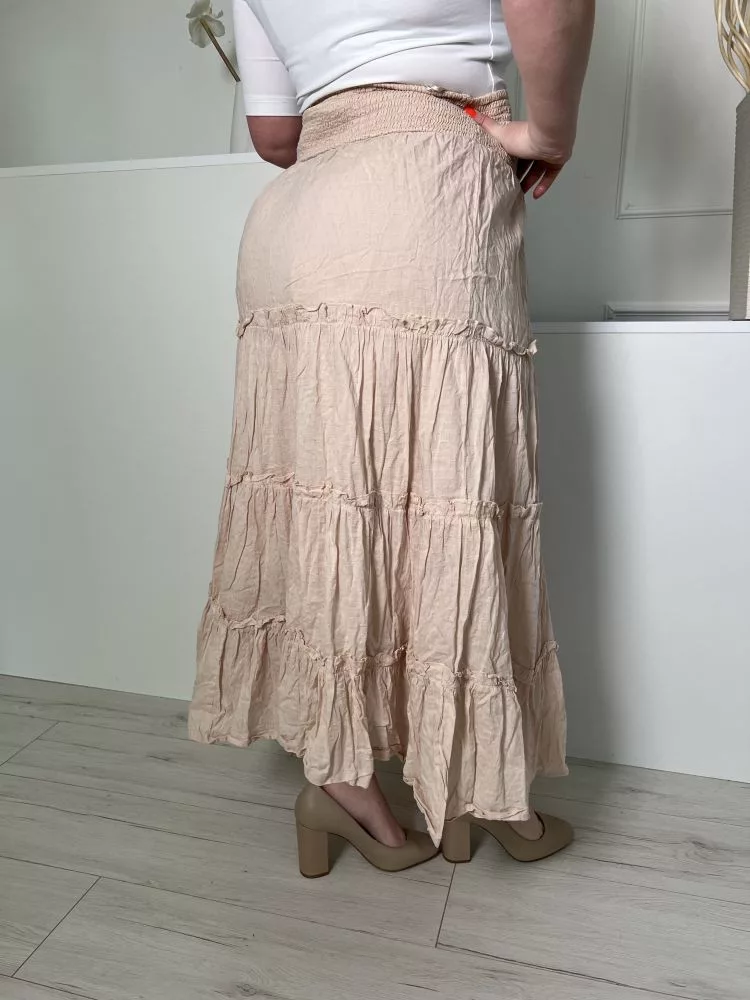 Primark (M) Világosbarna Darázsolt Derekú, 100% Pamut Fodros, Anyagában Mintás Szoknya
