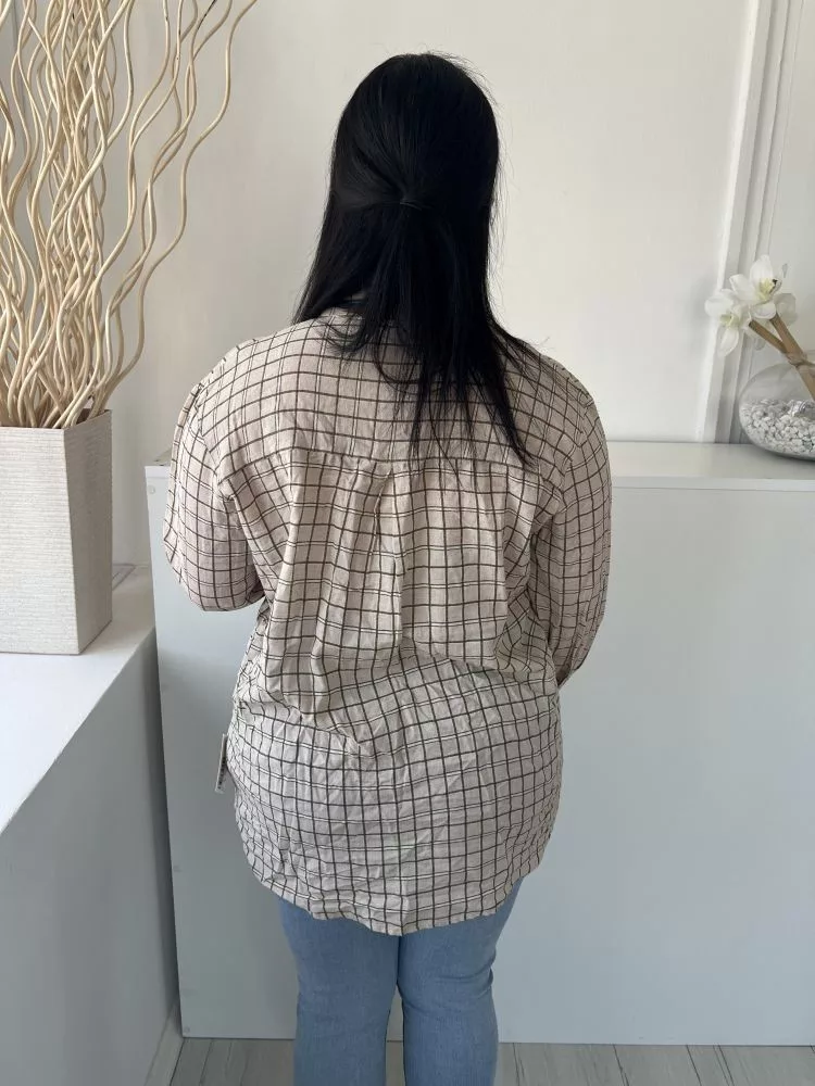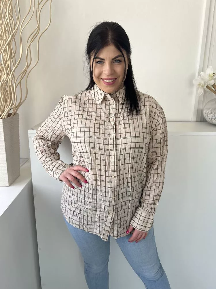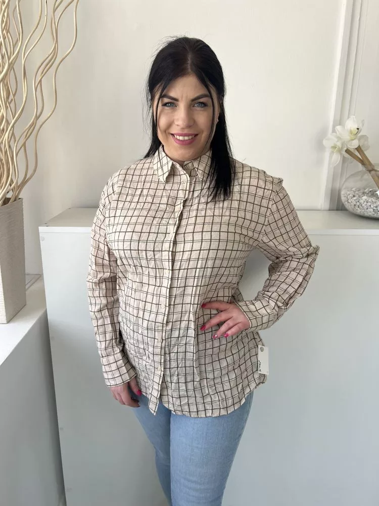 Primark (M) Világosbarna Zöld Kockás, Elől Végig Gombos Galléros, Gombos Ujjvégű Felső