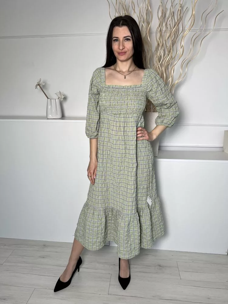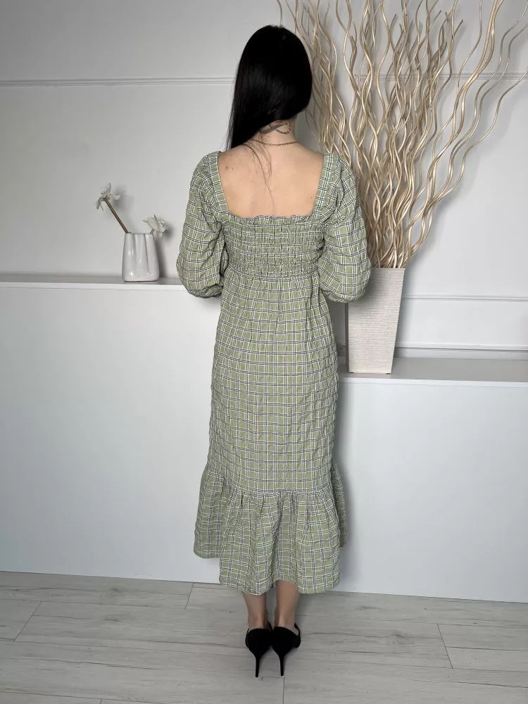 Primark (M) Zöld Fekete Kockás, Fodros Aljú 65% Pamut, Felül Darázsolt, Buggyos Ujjú Ruha