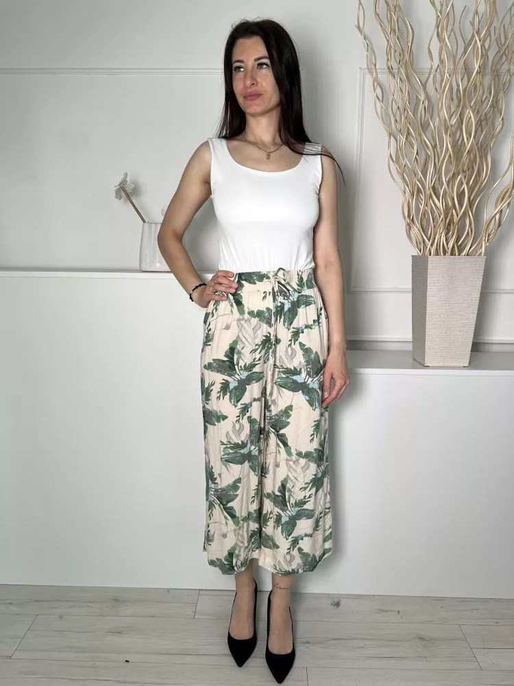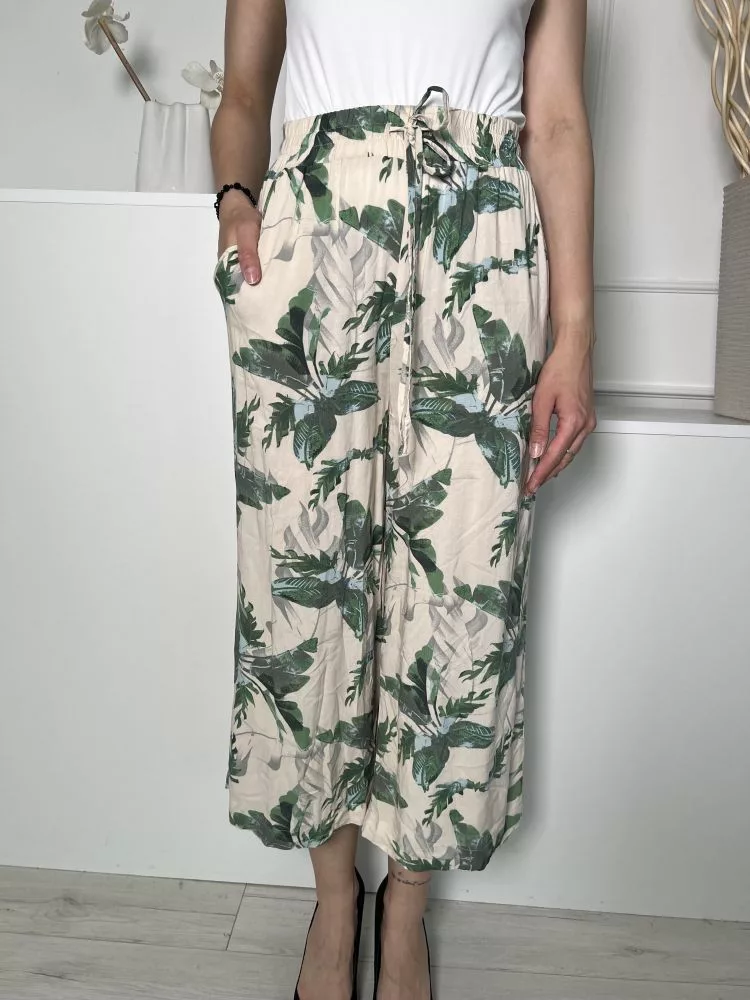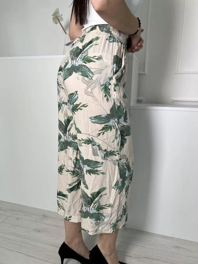 Primark (S) Drapp Zöld Levélmintás, Derékban Összehúzható Megkötős, Zsebes, Bőszárú Nadrág