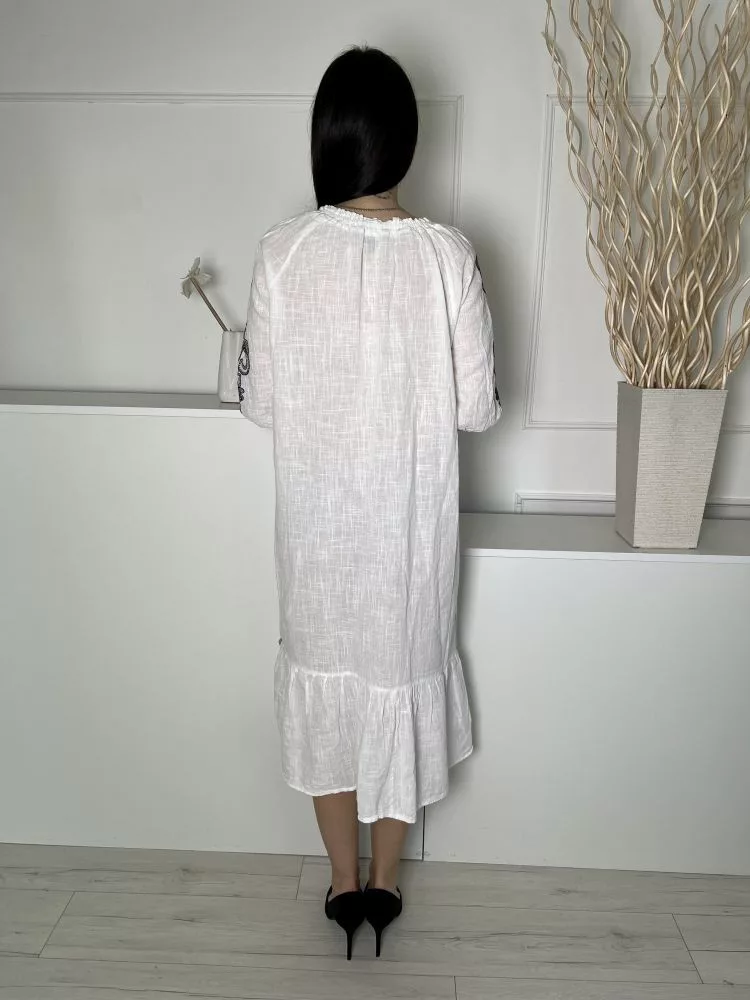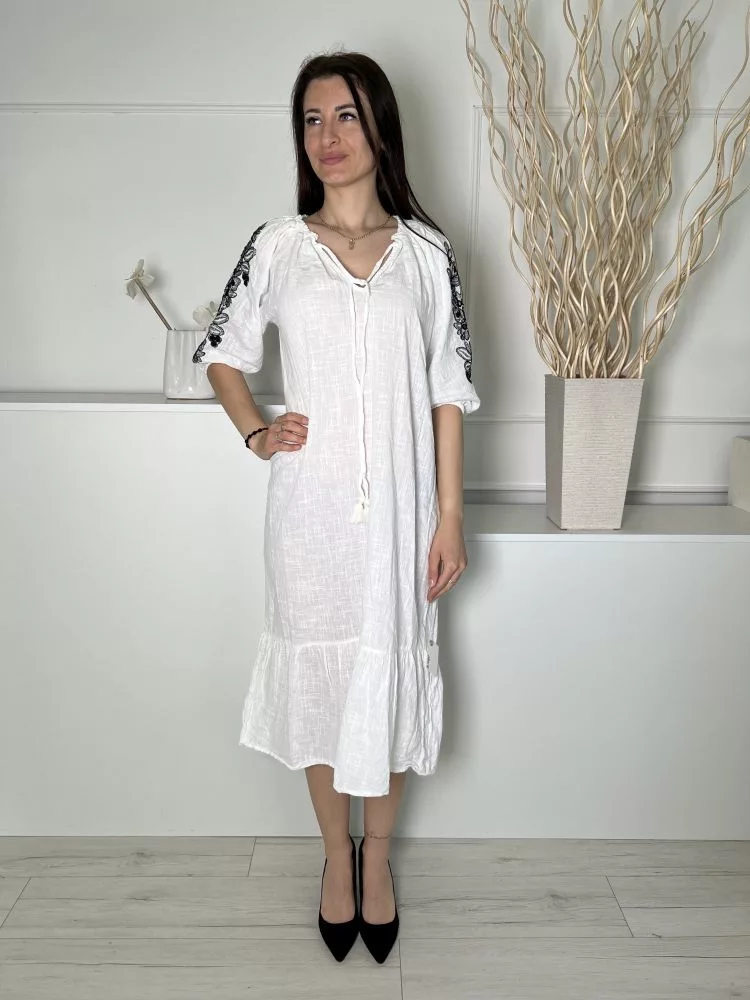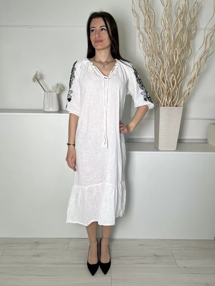 Primark (S) Fehér Nyakban Megköthető, Ujján Fekete Hímzett Mintás 100% Pamut Alapanyagú Ruha