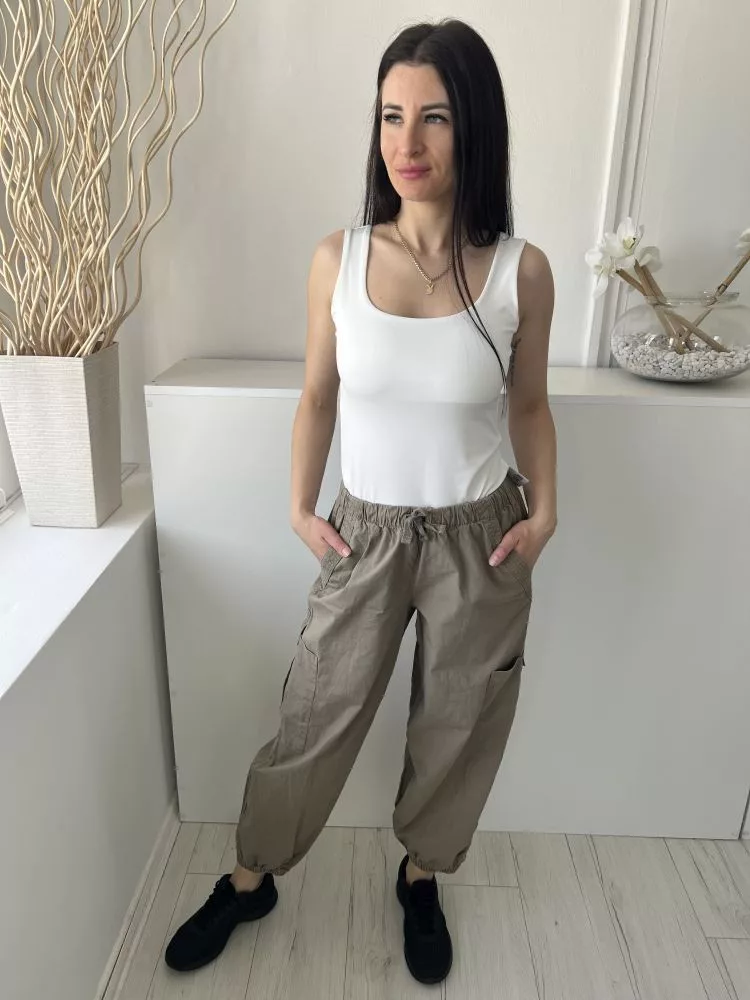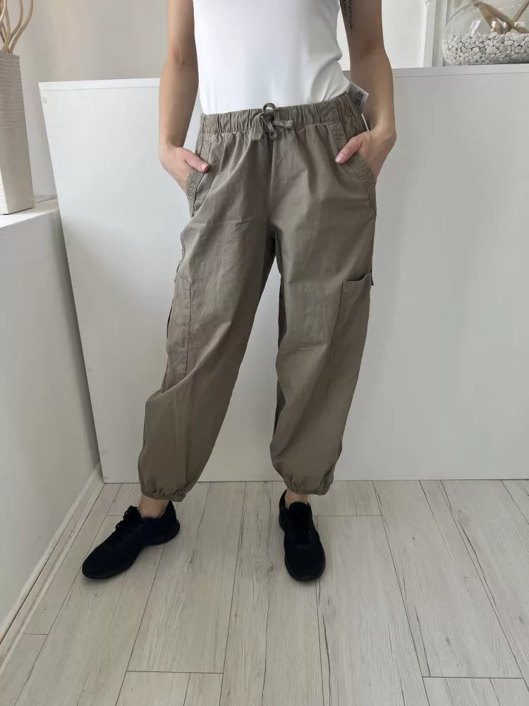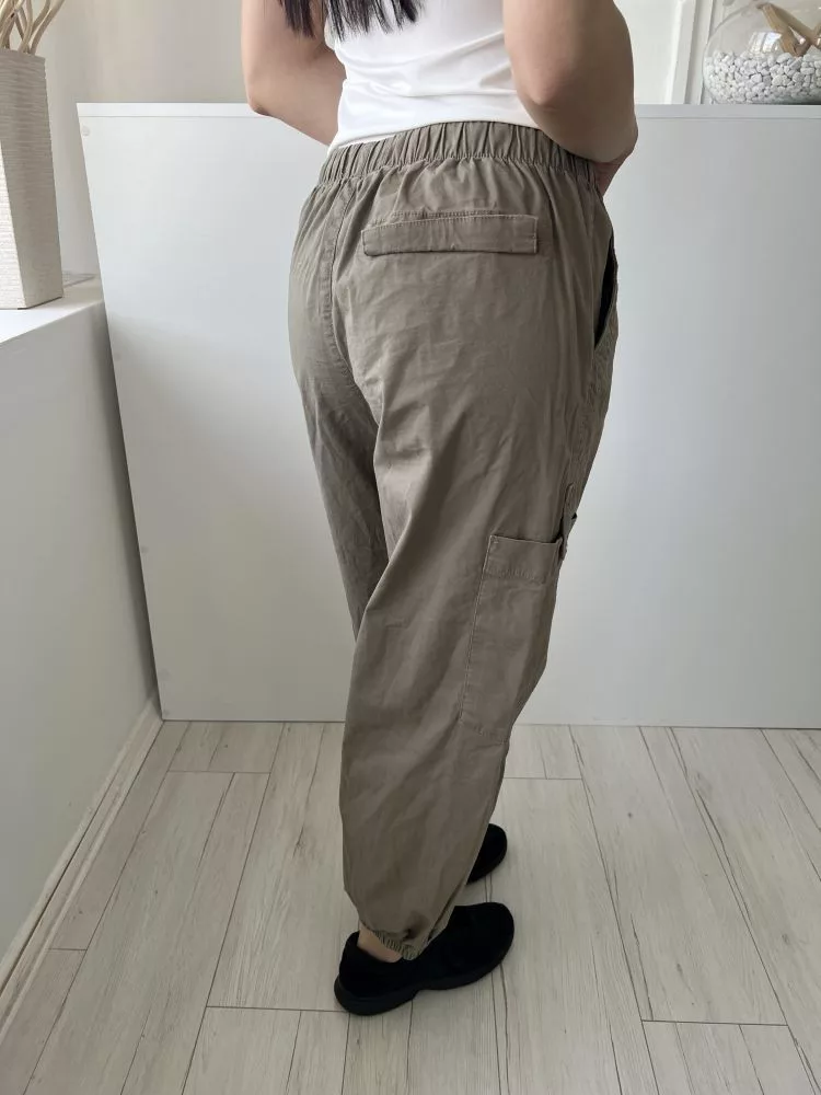 Primark (S) Khaki Derékban Összehúzható, Megkötős Oldalt Zsebes, Gumírozott Aljú, 98% Pamut Nadrág