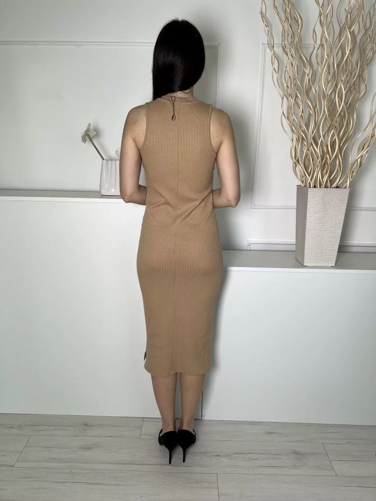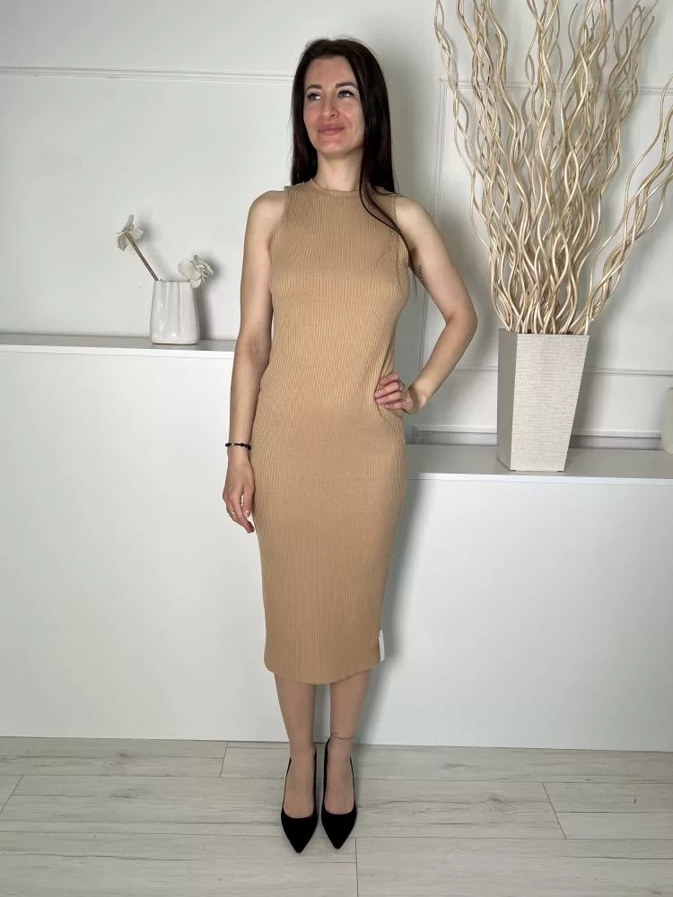 Primark (S) Mogyoró Anyagában Bordázott Kerek Nyakú, Rugalmas Anyagú Ruha