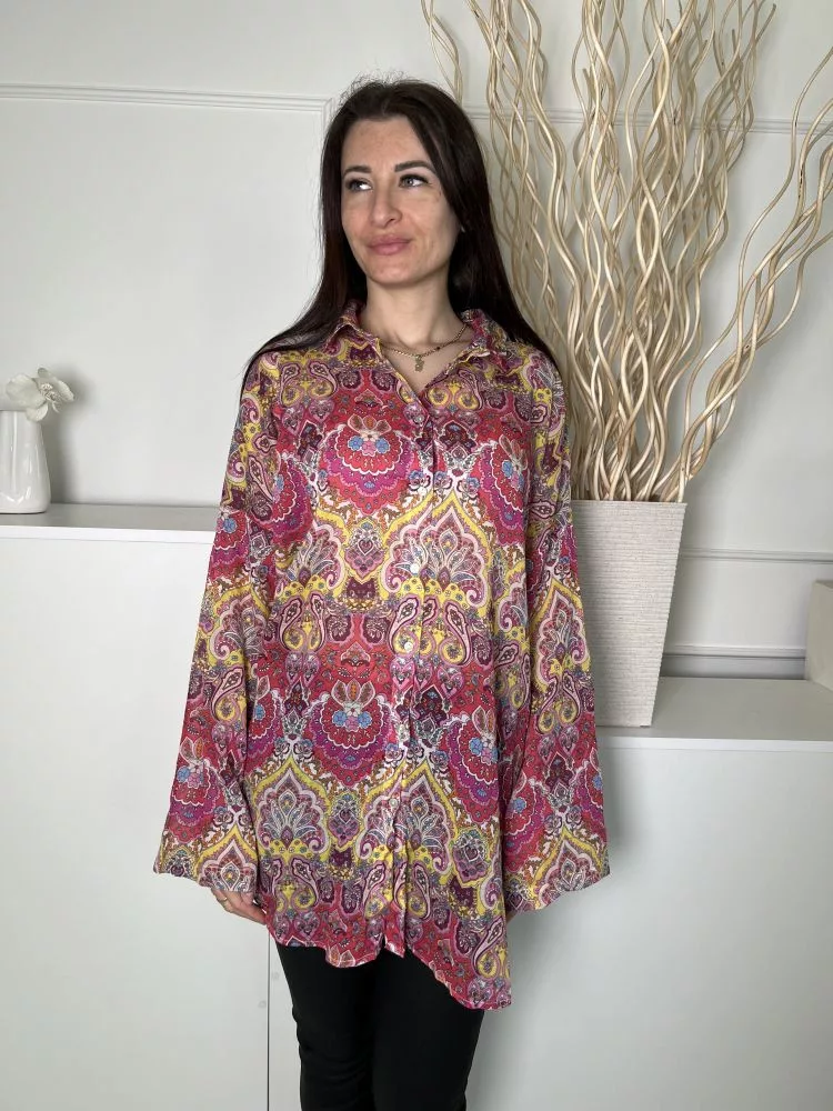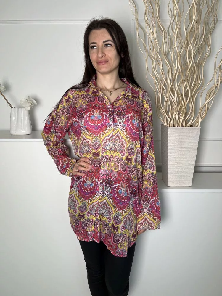 Primark (S) Színes Mintás Elől Végig Gombos, 100% Pamut Galléros, Bőfazonú Felső