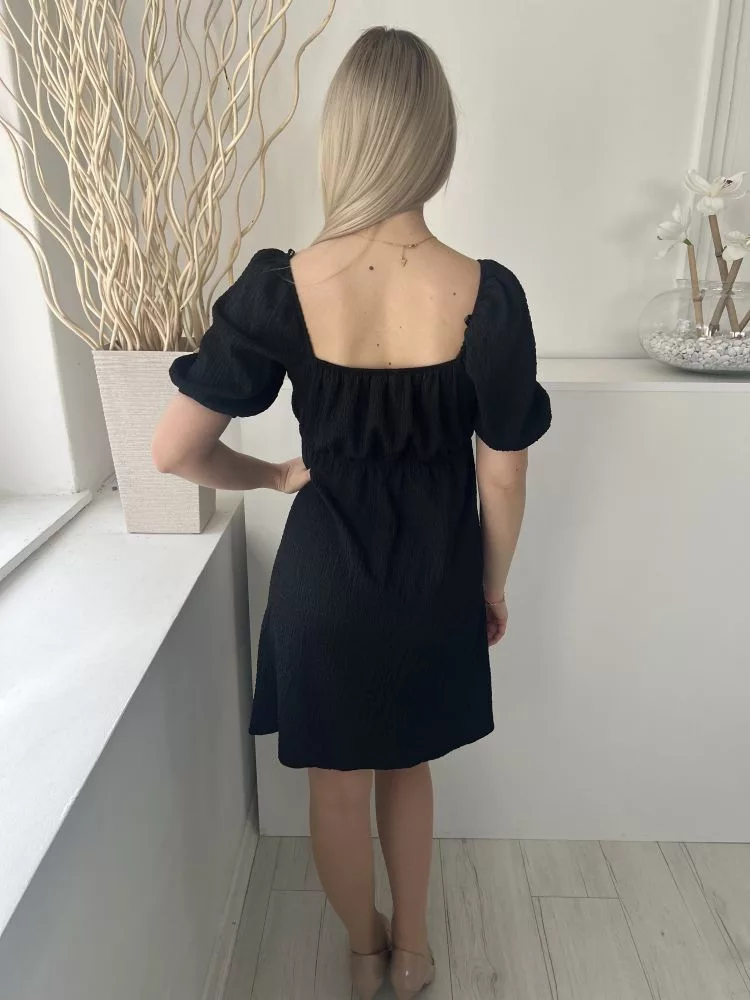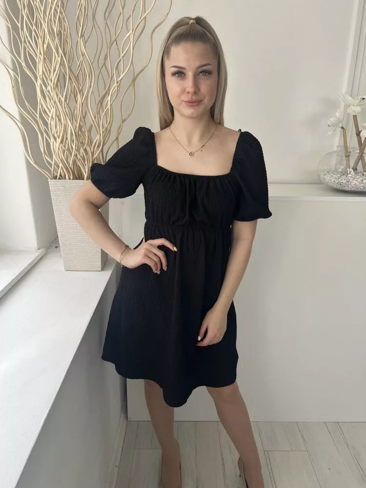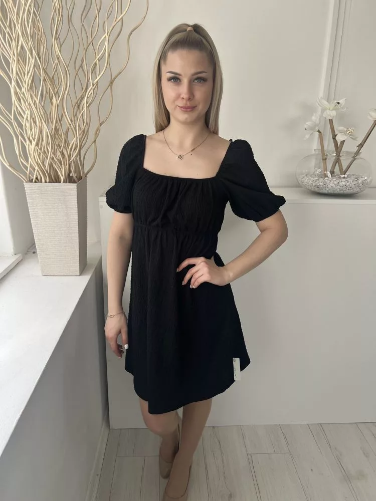 Primark (XS) Fekete Anyagában Mintás, Buggyos Ujjú Gumisderekú Ruha