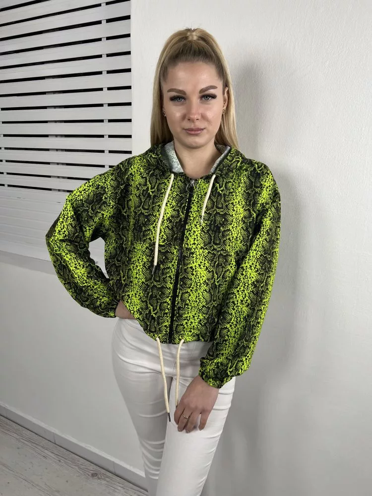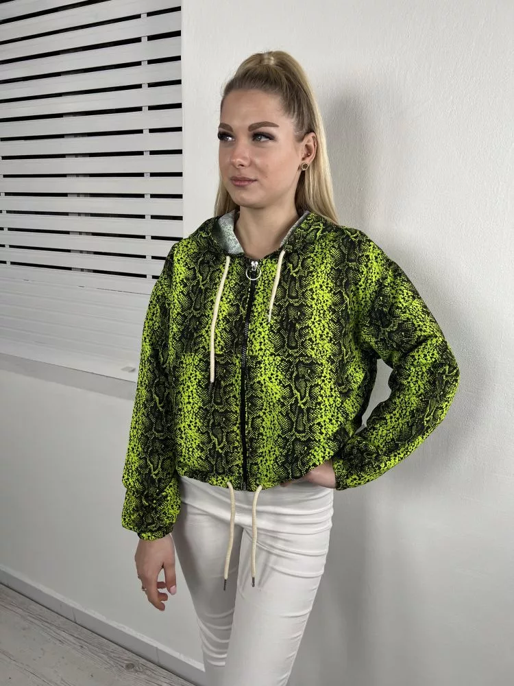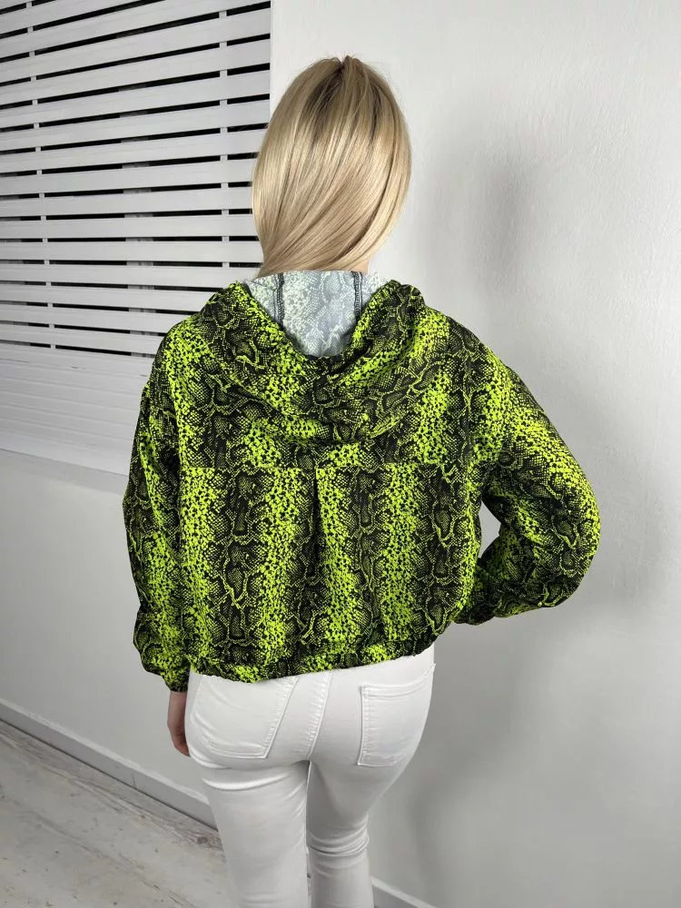 Primark (XS) Neonzöld Elöl Cipzáros, Derékban Összehúzható Kígyóbőrmintás, Kapucnis Kabát