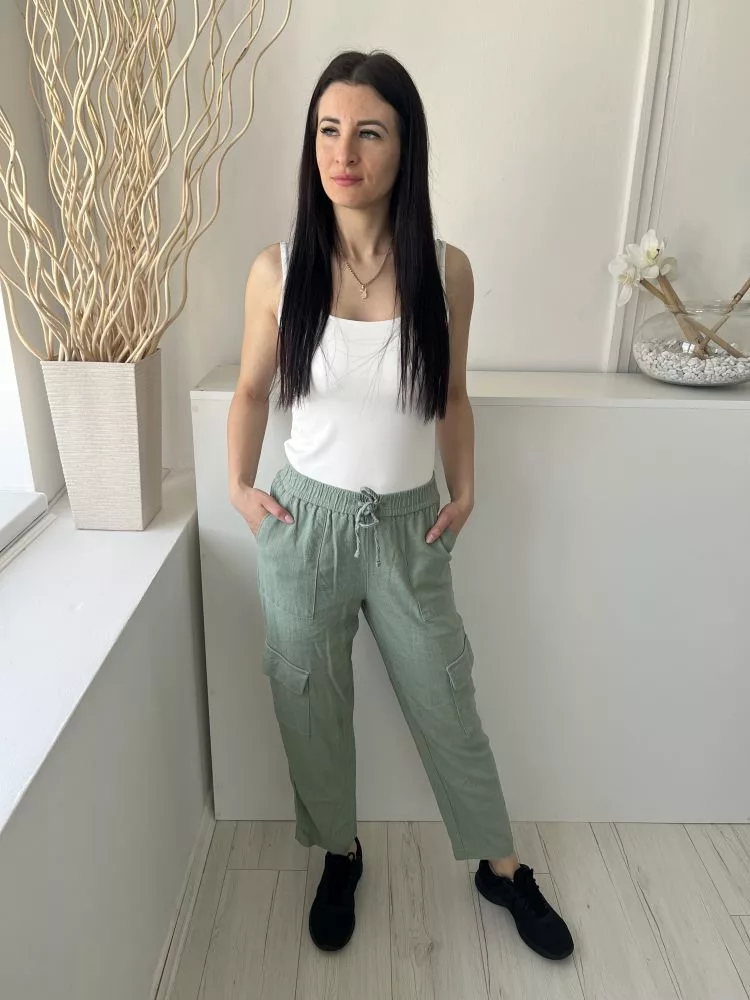 Primark (XS) Világos Khaki Gumisderekú, Díszmegkötős Oldalt Zsebes Nadrág