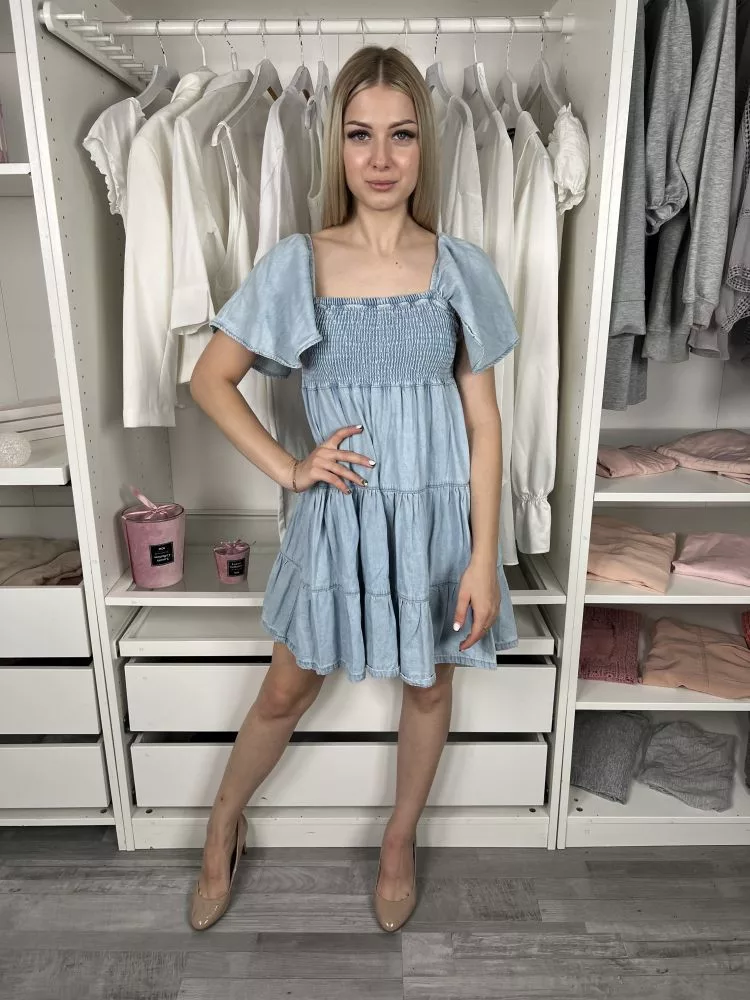 Primark (XXS) Világoskék Farmer, Fodros Felső Része Darázsolt Ruha