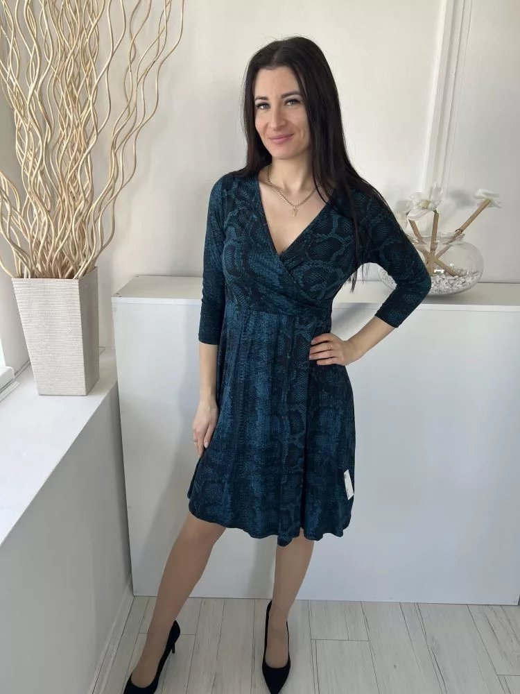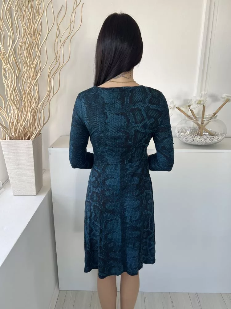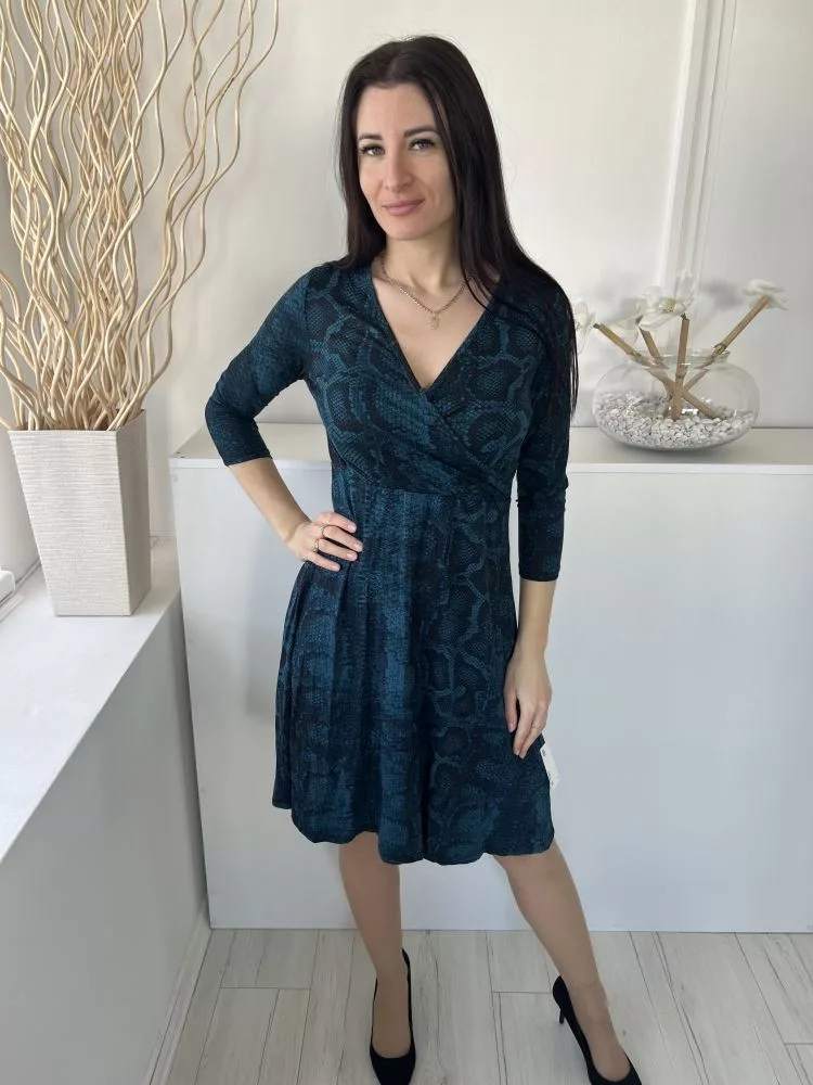 Principles (M) Sötétkék Fekete Kígyóbőrmintás, Mellnél Átlapolt Rugalmas Anyagú Ruha