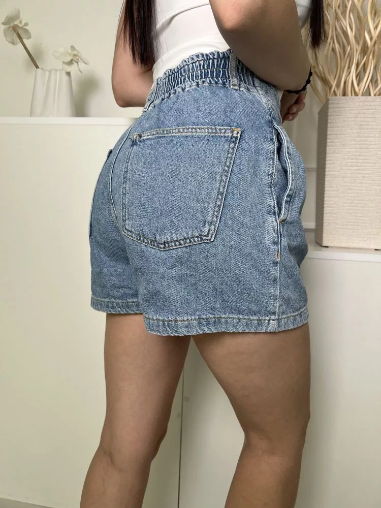 Pull&Bear (M) Világoskék Elől Gombos, Övtartós Hátul Darázsolt Derekú, Farmer Rövidnadrág