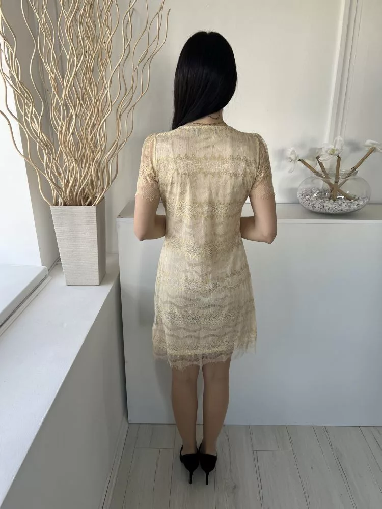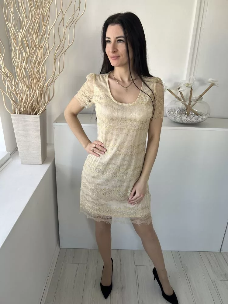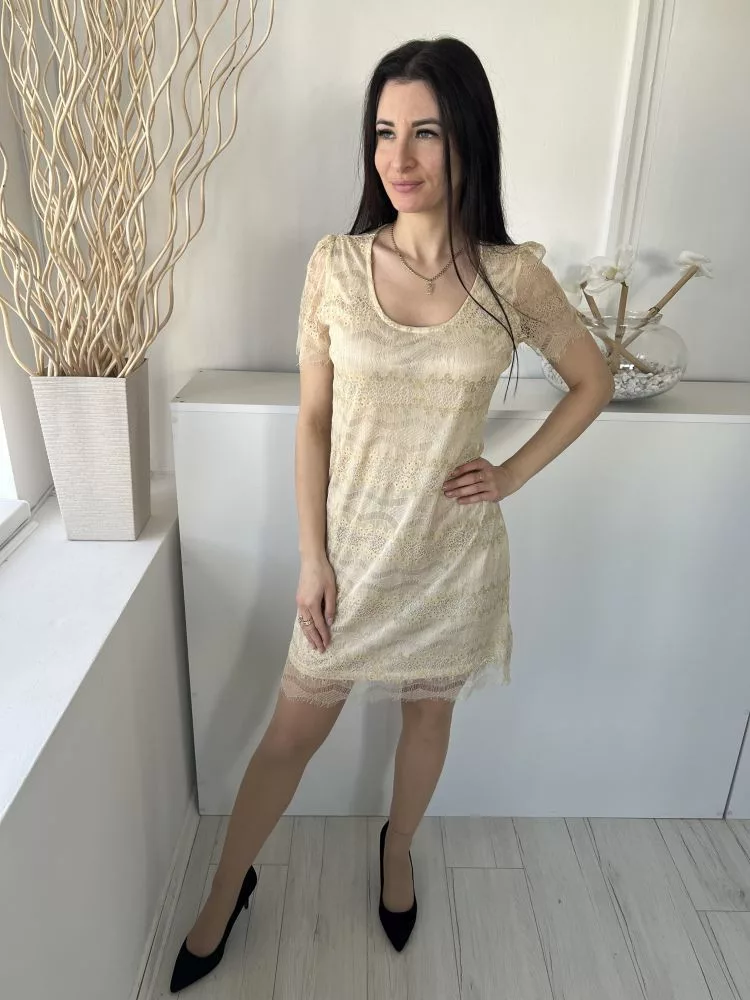 Pussycat (M) Aranysárga Anyagában Csipkés, Bélelt Fémszálas, Buggyos Vállú Ruha