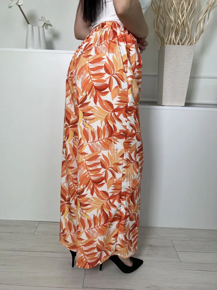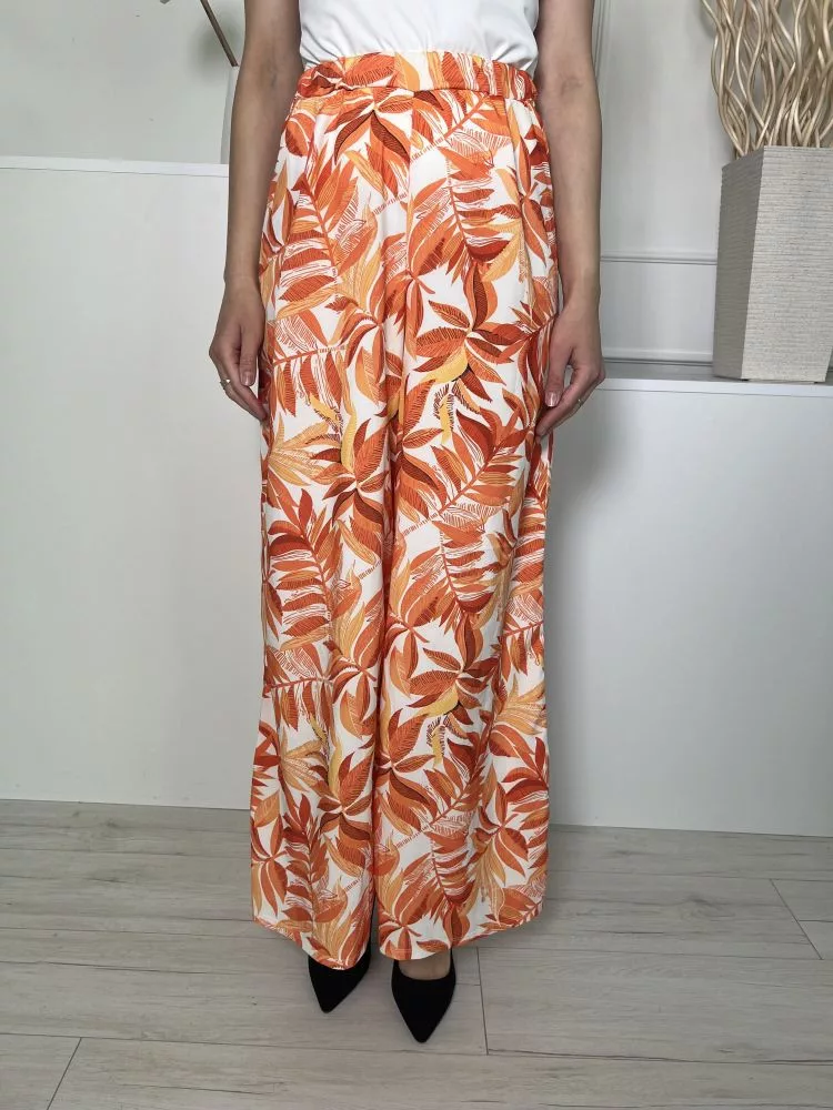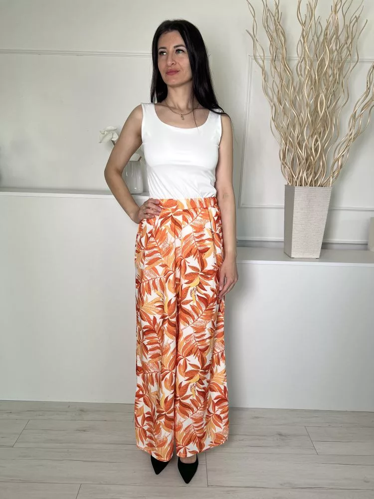 Quiz (M) Fehér Narancs Levélmintás, Hátul Gumisderekú Bőfazonú Nadrág
