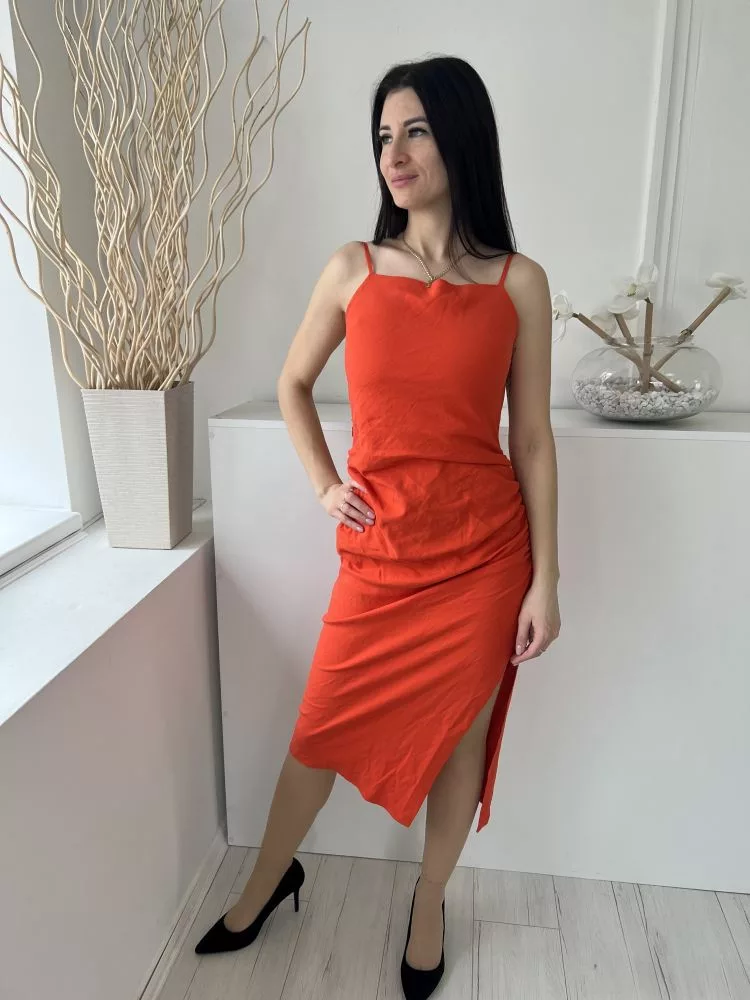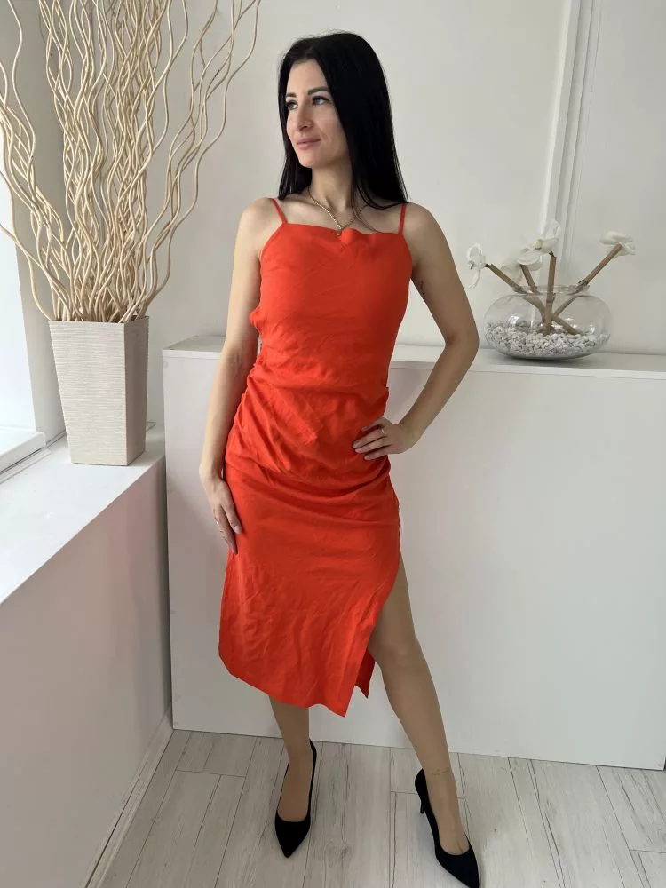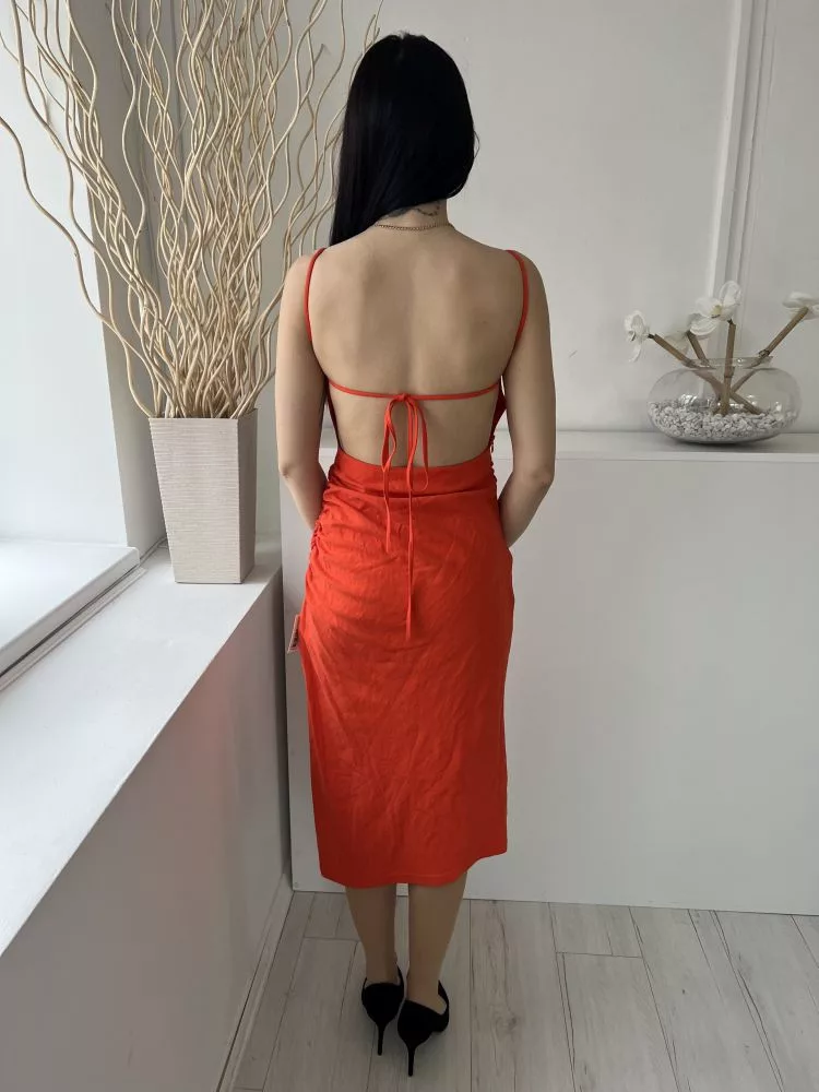 Reiss (M) Vérnarancs Hátul Nyitott, Megkötős Oldalt Húzott, Sliccelt, Cipzáros Ruha