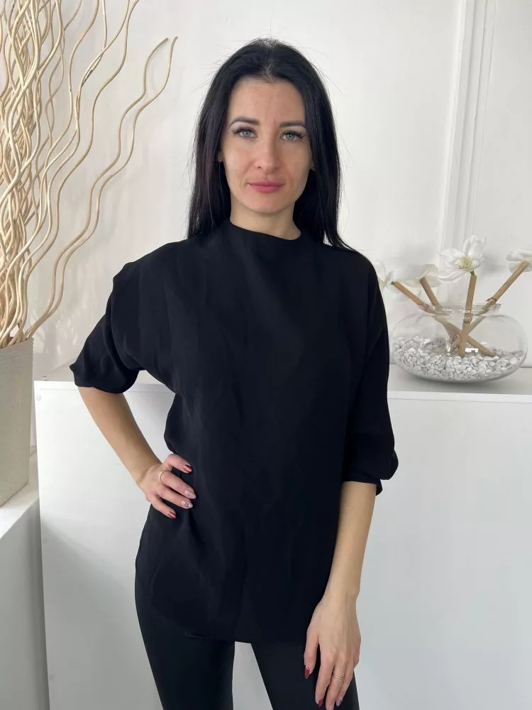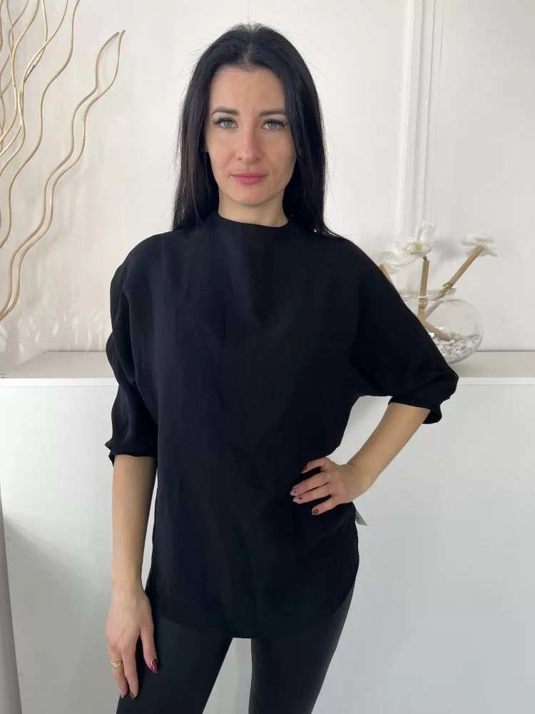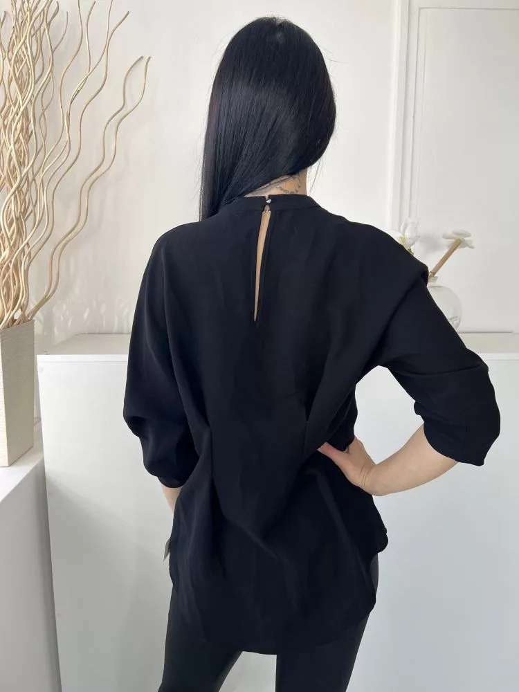 River Island (M) Fekete Hátul Nyakban Gombos Denevér Ujjú, Kerekített Aljú Felső