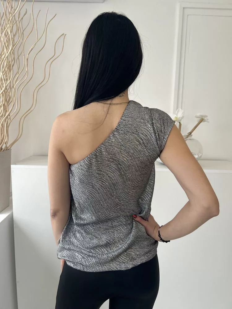 River Island (S) Ezüst Mellnél Csavart, Félvállas Gumisderekú Felső