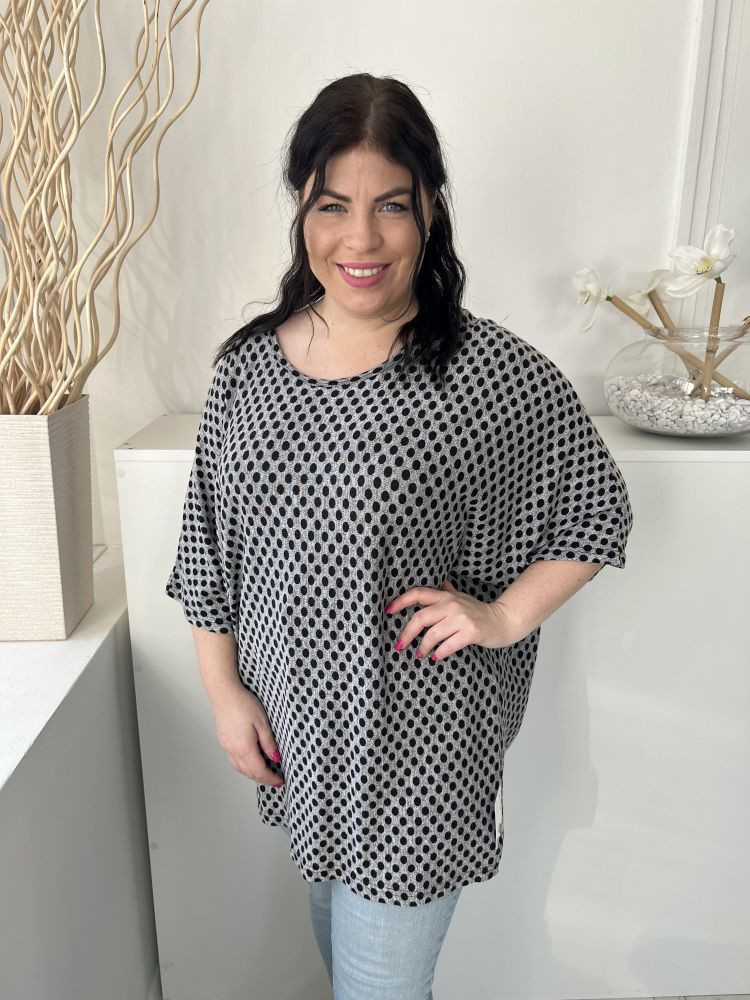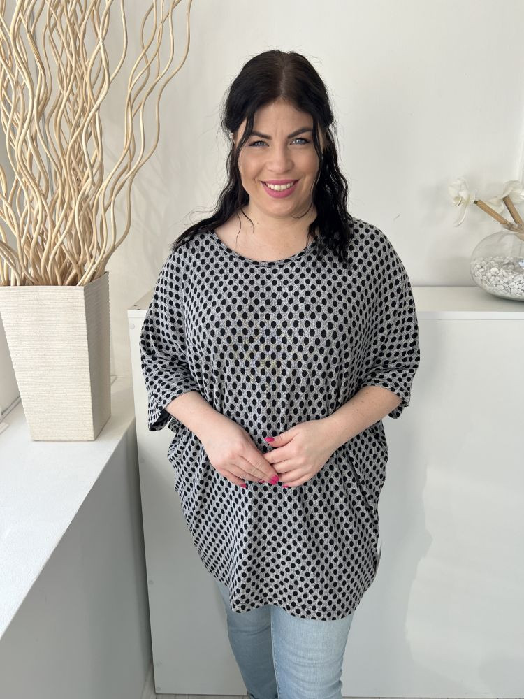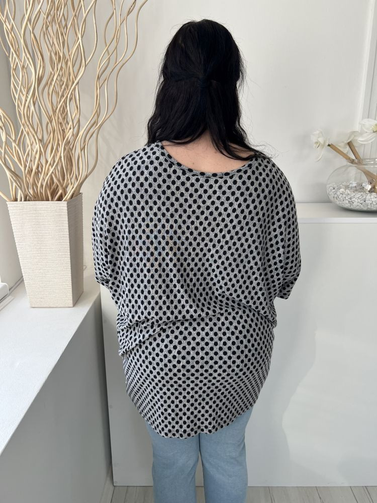 Roman (M) Szürke Fekete Pöttyös, Kerek Nyakú Denevér Ujjú Felső