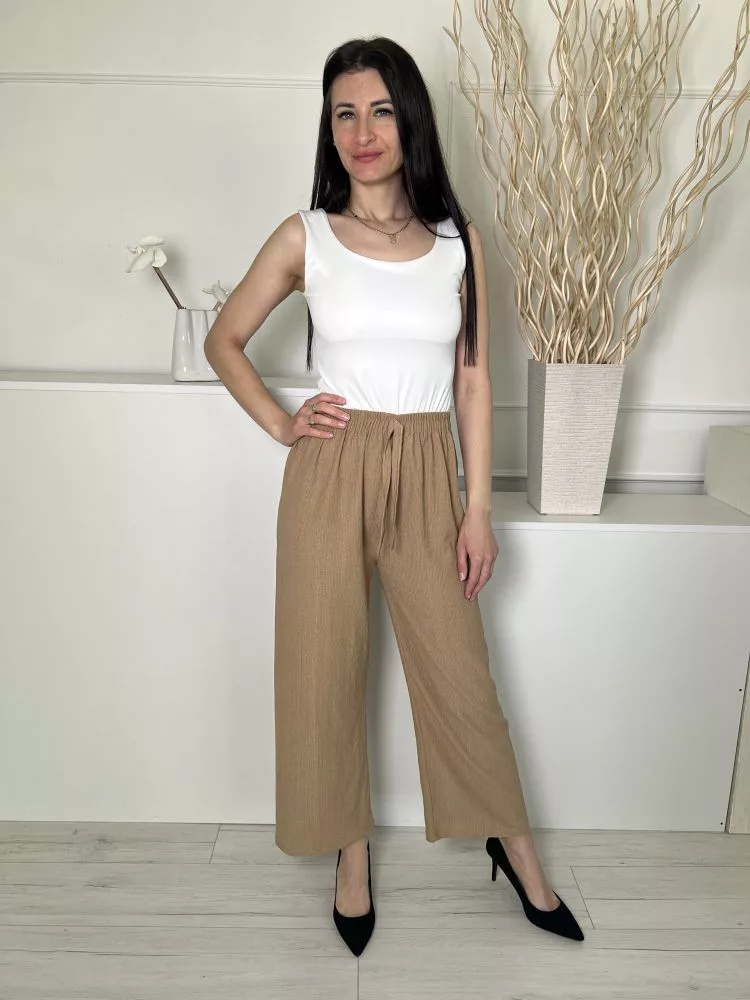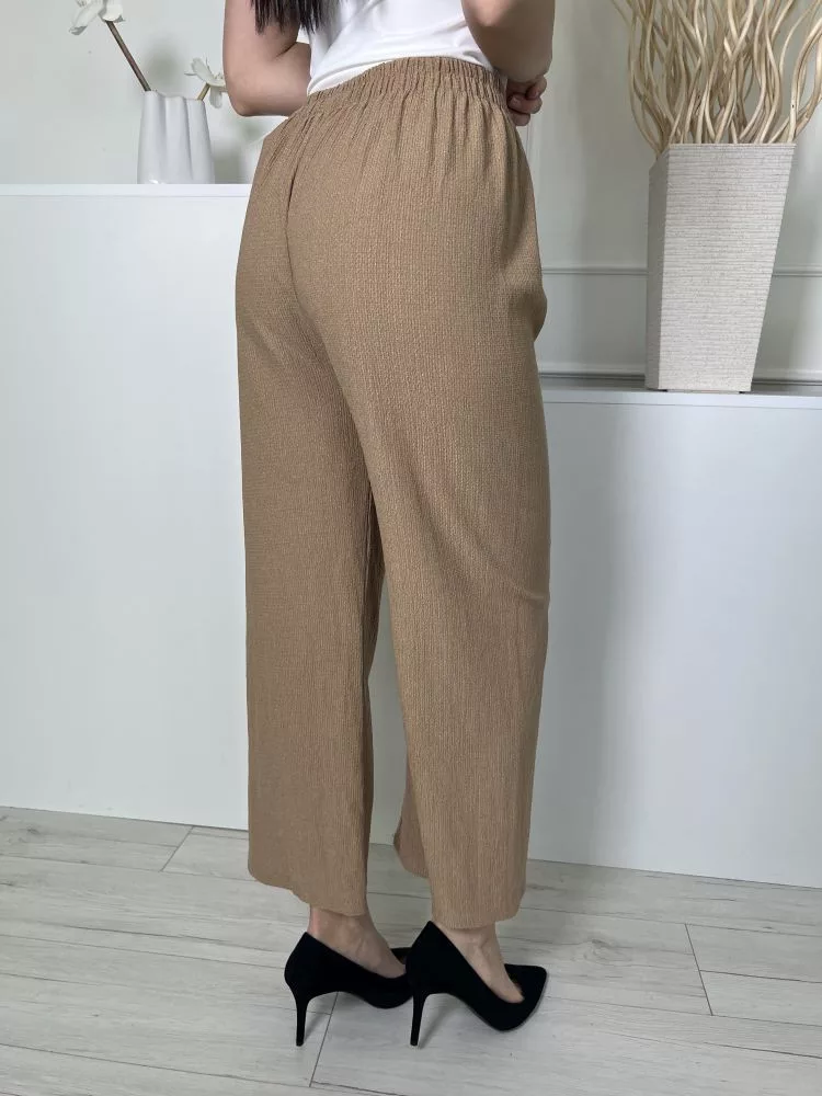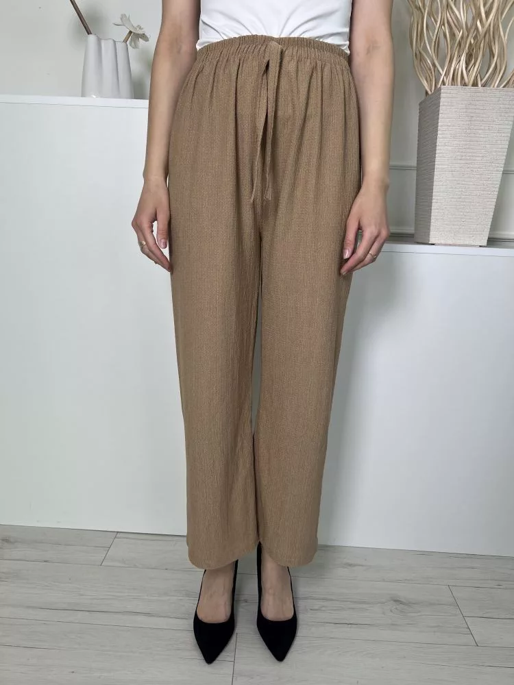 (S) Barna Anyagában Mintás, Gumisderekú Elől Díszmegkötős, Rugalmas Anyagú Nadrág